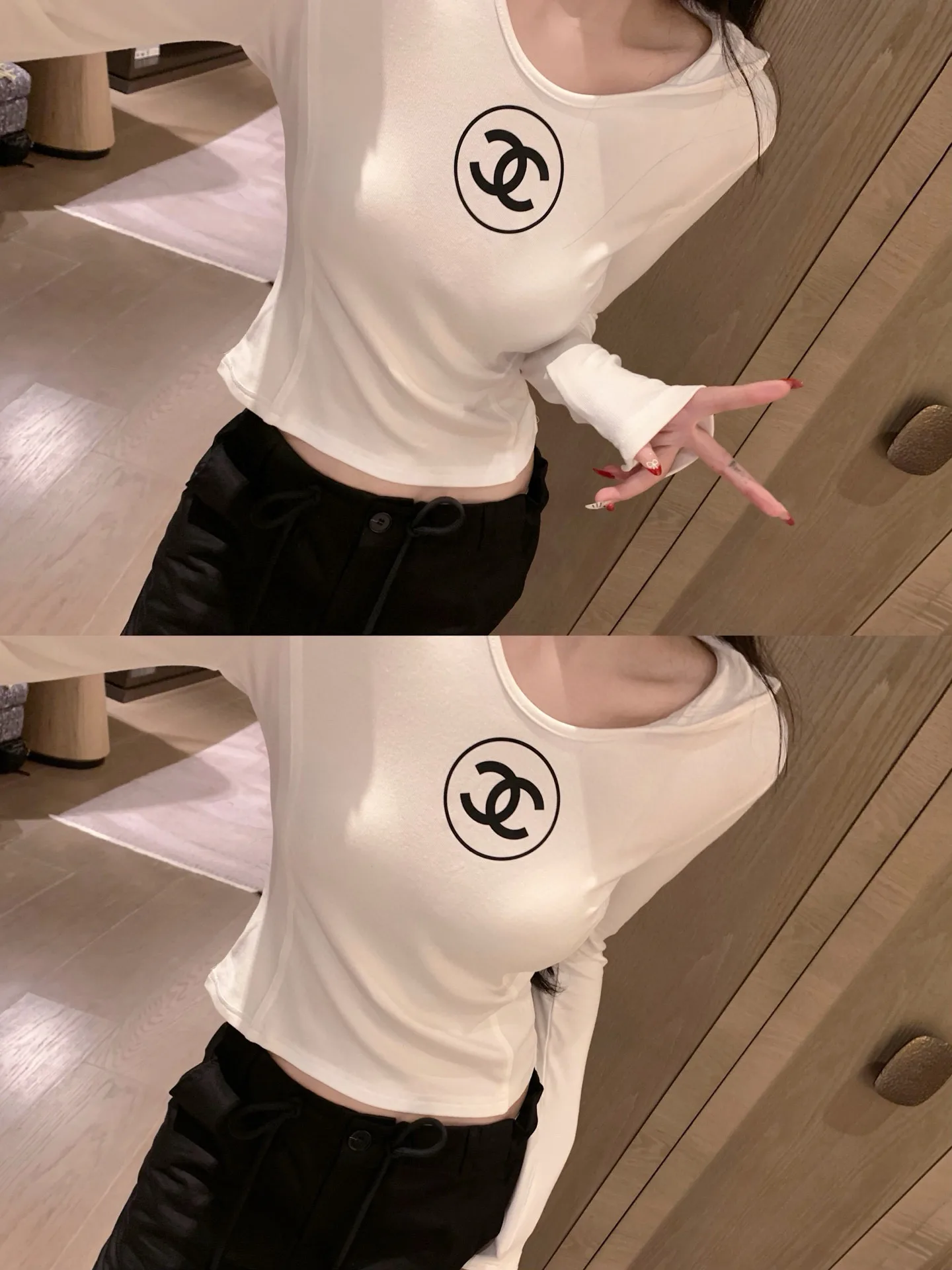 Hochwertiges Chanel Base Shirt Blau Print Luxus