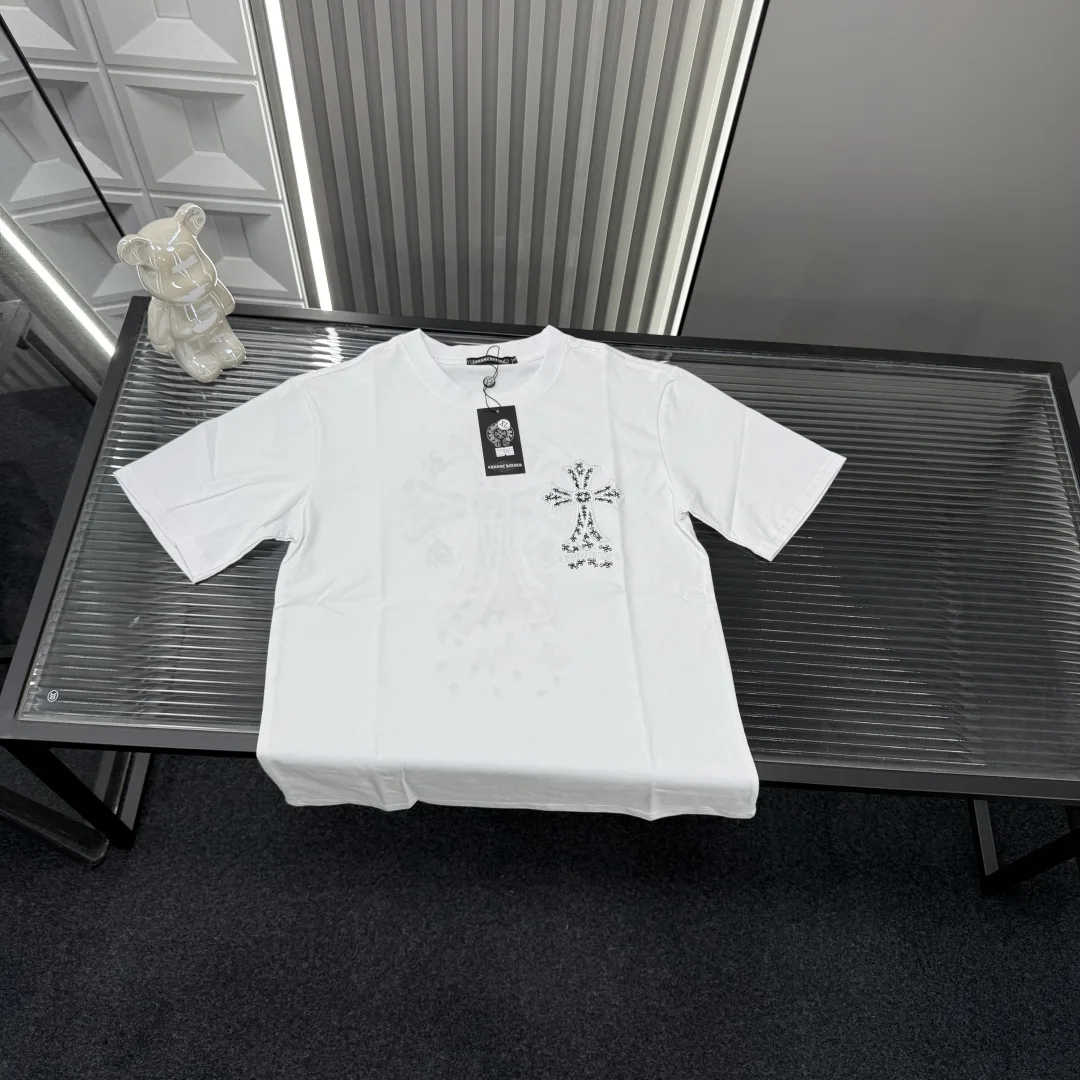 Hochwertiges Chrome Hearts Kurzarm-Shirt im weißen Stickstil