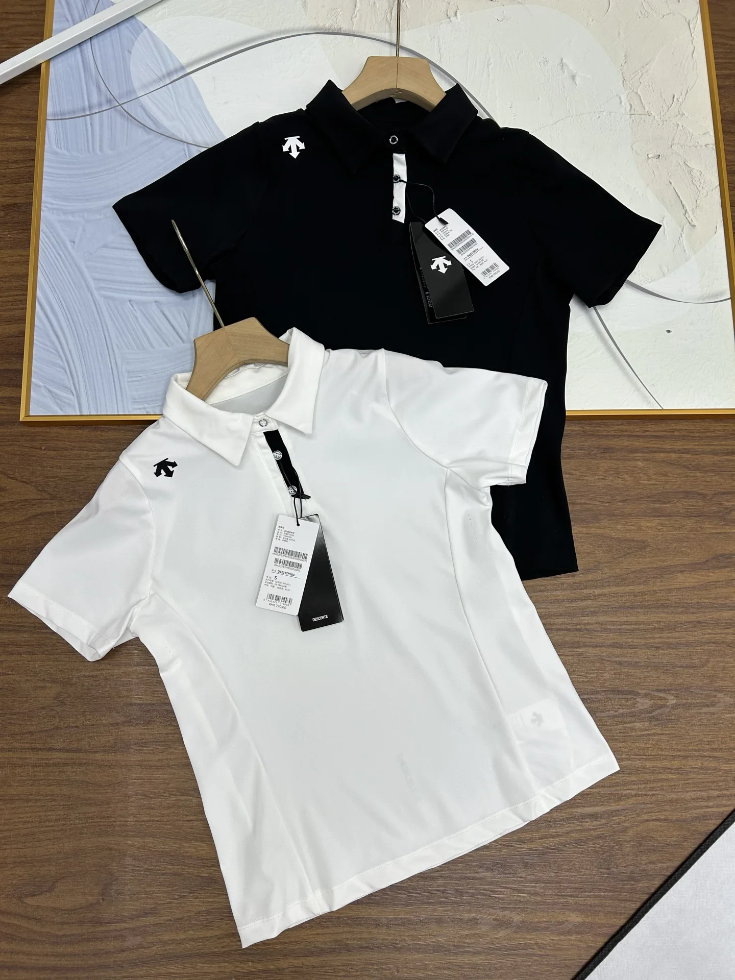 Hochwertiges Descente Kurzarmshirt aus schwarzer Baumwolle im sportlichen Stil