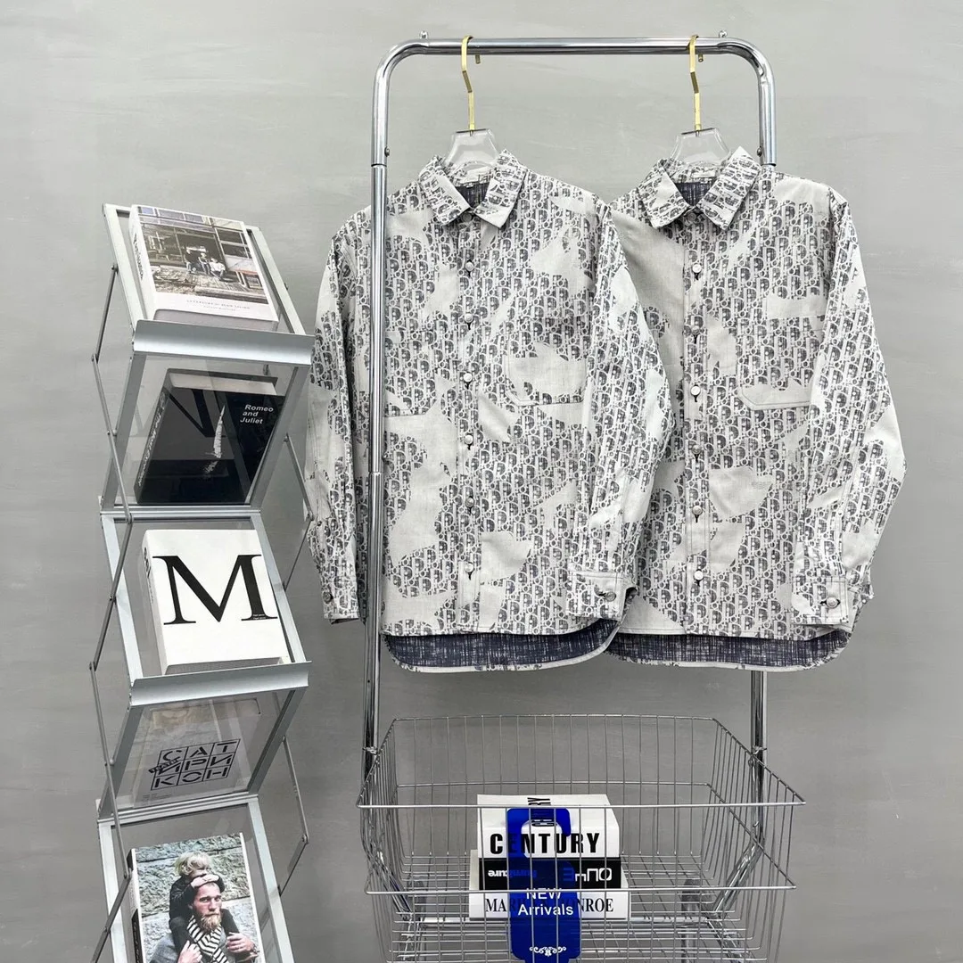 Diors limitierte Herbstedition des klassischen Monogramm-Jacquard-Allover-Jeanshemds – ein Batik-, Used-Look und gebleichtes Paarhemd mit Jacke.