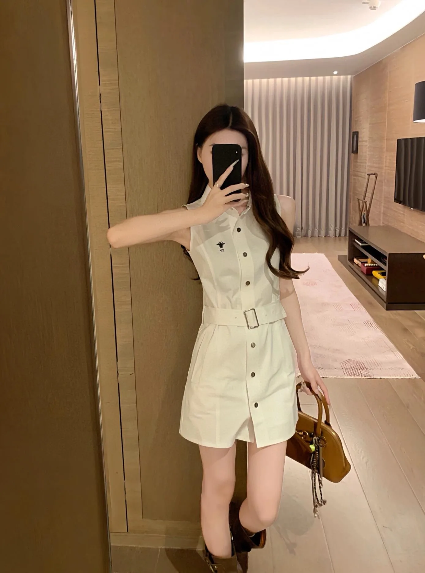 DIOR [Hemdblusenkleid mit Bienenstickerei]
