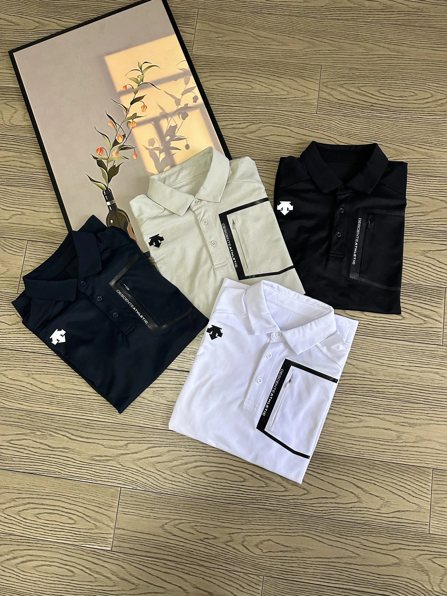 DESCENTE / Descente Counter – Vierfarbiger Stehkragen, vielseitig einsetzbar für Training, Sport und Fitness. Robustes, atmungsaktives und schweißableitendes Kurzarmshirt (Fotografiert bei natürlichem Licht, Grün kann Farbabweichungen aufweisen).
