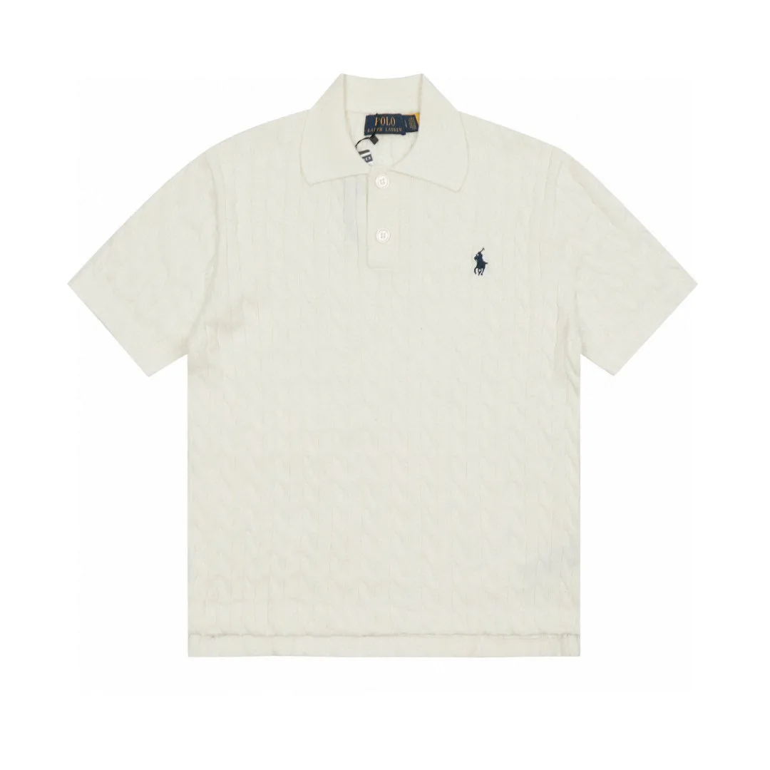 Ralph Lauren Revers, einfarbig, Pony-Logo-Stickerei, Kurzarm-Strick