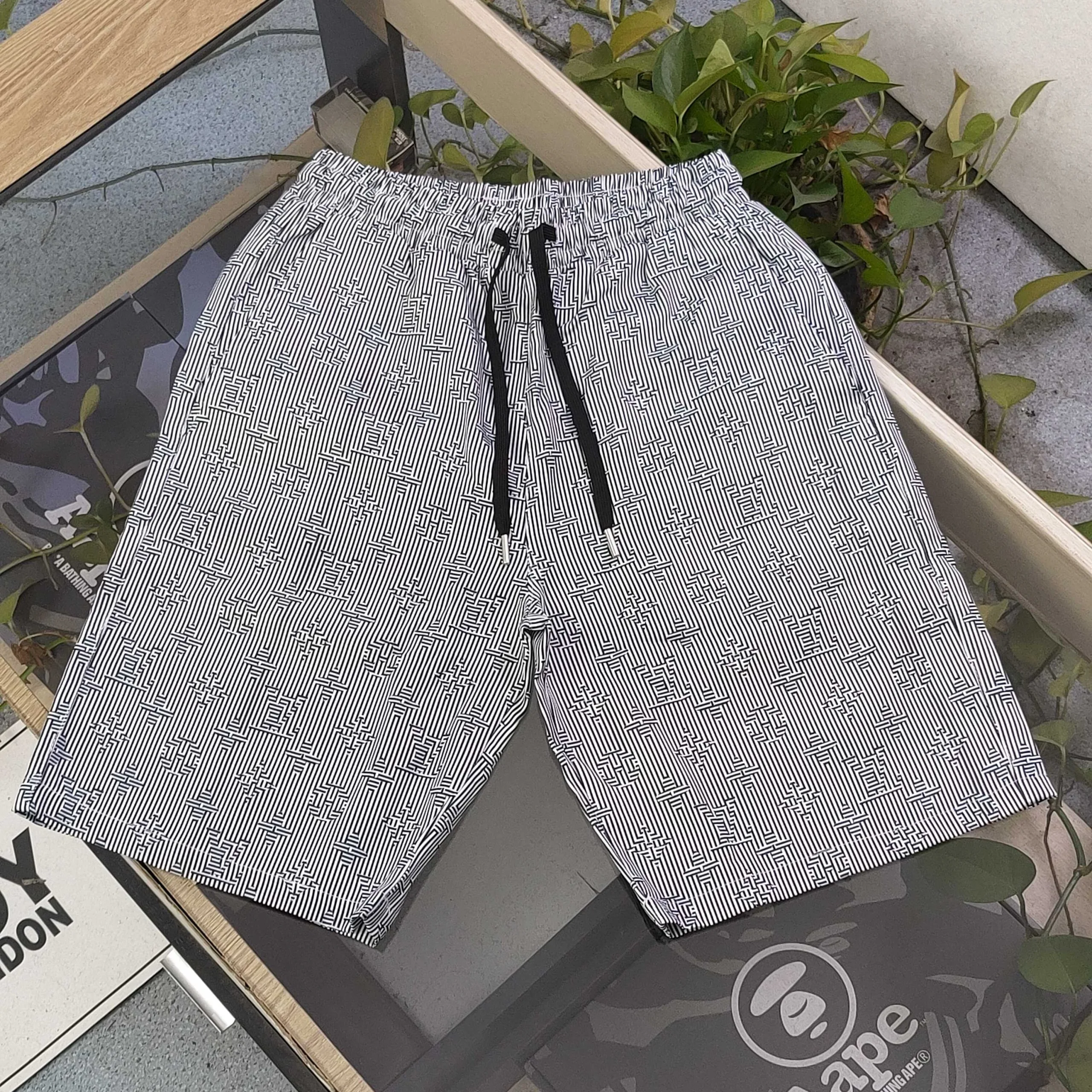 Neue, lässige Strandshorts für Paare mit grau gestreiftem Logo-Print von Louis Vuitton LV und schnelltrocknendem Design. Die Shorts aus glattem Stoff für zusätzlichen Komfort zeichnen sich durch ein individuell zugeschnittenes Karomuster aus, das perfekt zum Hemd passt. So sparen Sie Zeit und Material. Der Allover-Print sorgt für einen satten, dreidimensionalen Look und einen trendigen und stylischen Look. Perfekt für Ober- und Unterwäsche. Unisex-Style!