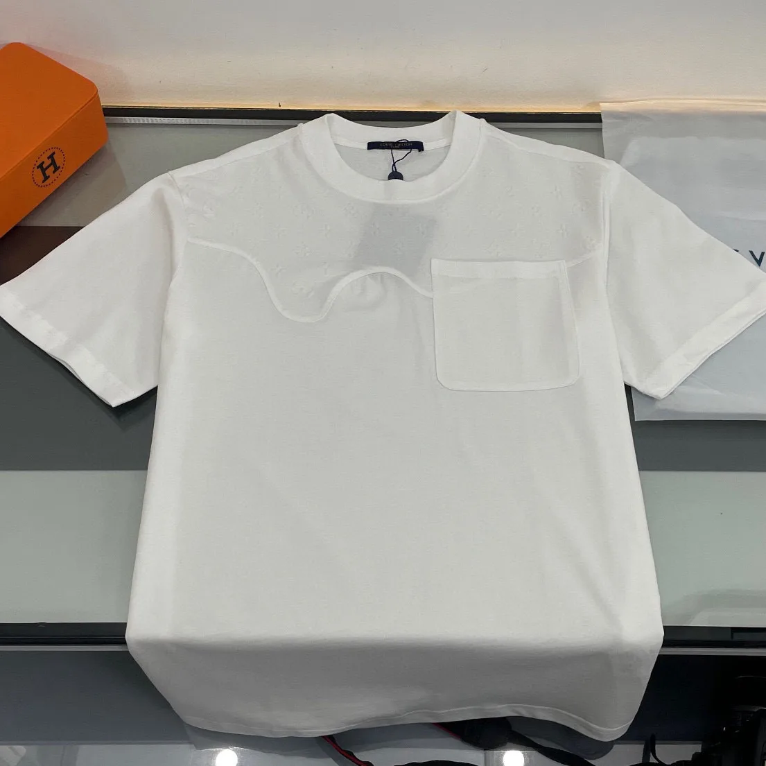 Das neue Kurzarm-T-Shirt mit Monogramm-Prägung von LV/Louis Vuitton.