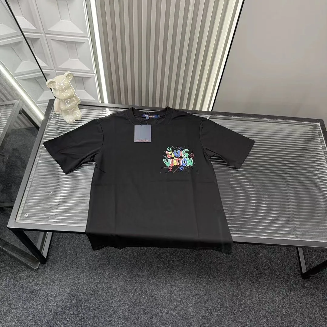 Empfohlene neue Kurzarmshirts: LV Louis Vuitton Kurzarmshirts mit buntem Logo. Alle drei Logos sind identisch mit denen auf der offiziellen Website. Zoomen Sie hinein, um Details zu sehen. Foto mit der Originalkamera aufgenommen.