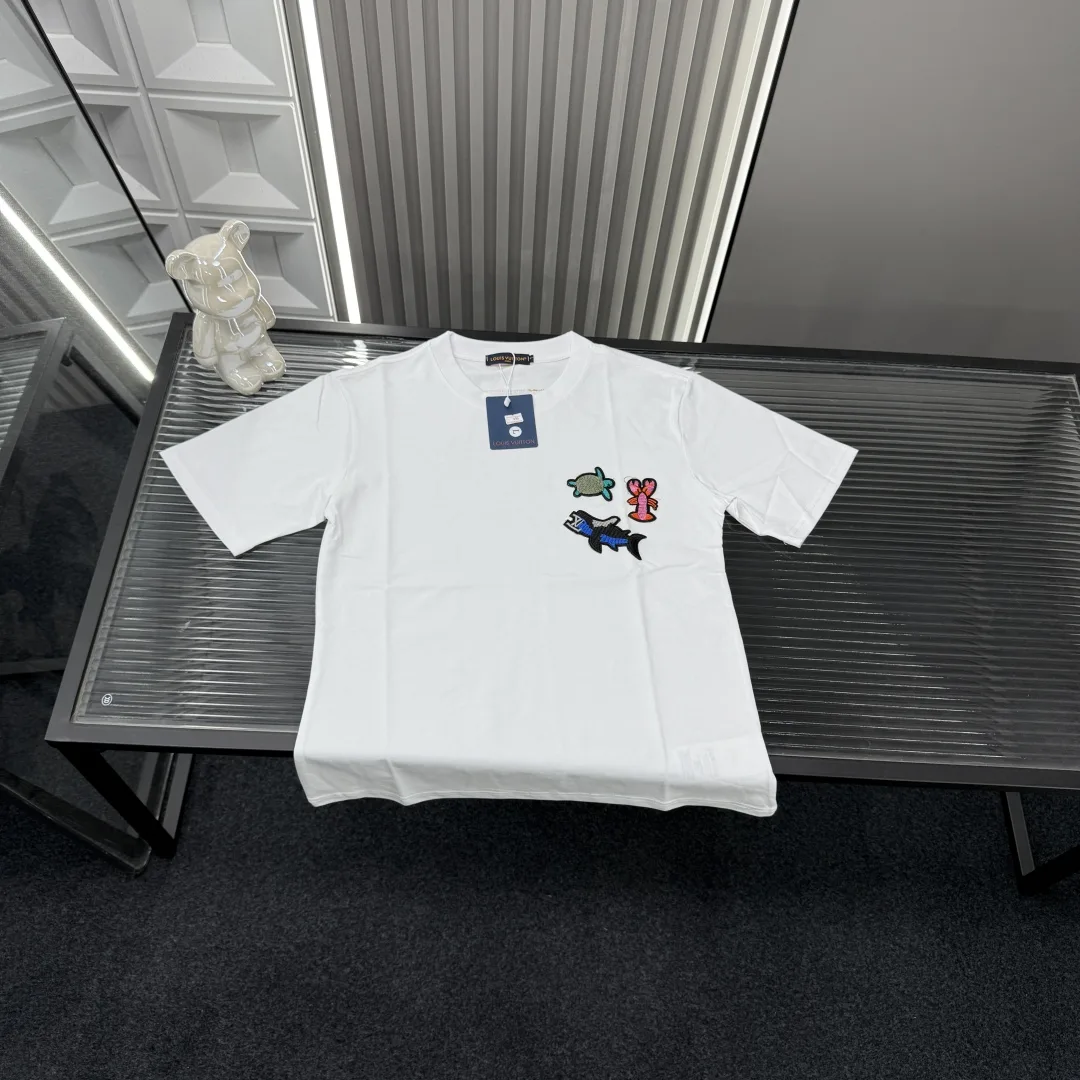 Empfohlene neue Kurzarmshirts: Louis Vuittons Kurzarmshirts mit Meerestier-Stickerei. Alle drei Logos sind enthalten, passend zur offiziellen Website. Zoomen Sie hinein, um Details zu sehen. Foto mit der Originalkamera aufgenommen.