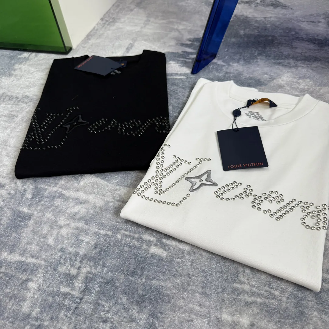 Louis Vuitton V SS Lockeres, lässiges und stylisches Kurzarm-T-Shirt mit Nietenstickerei