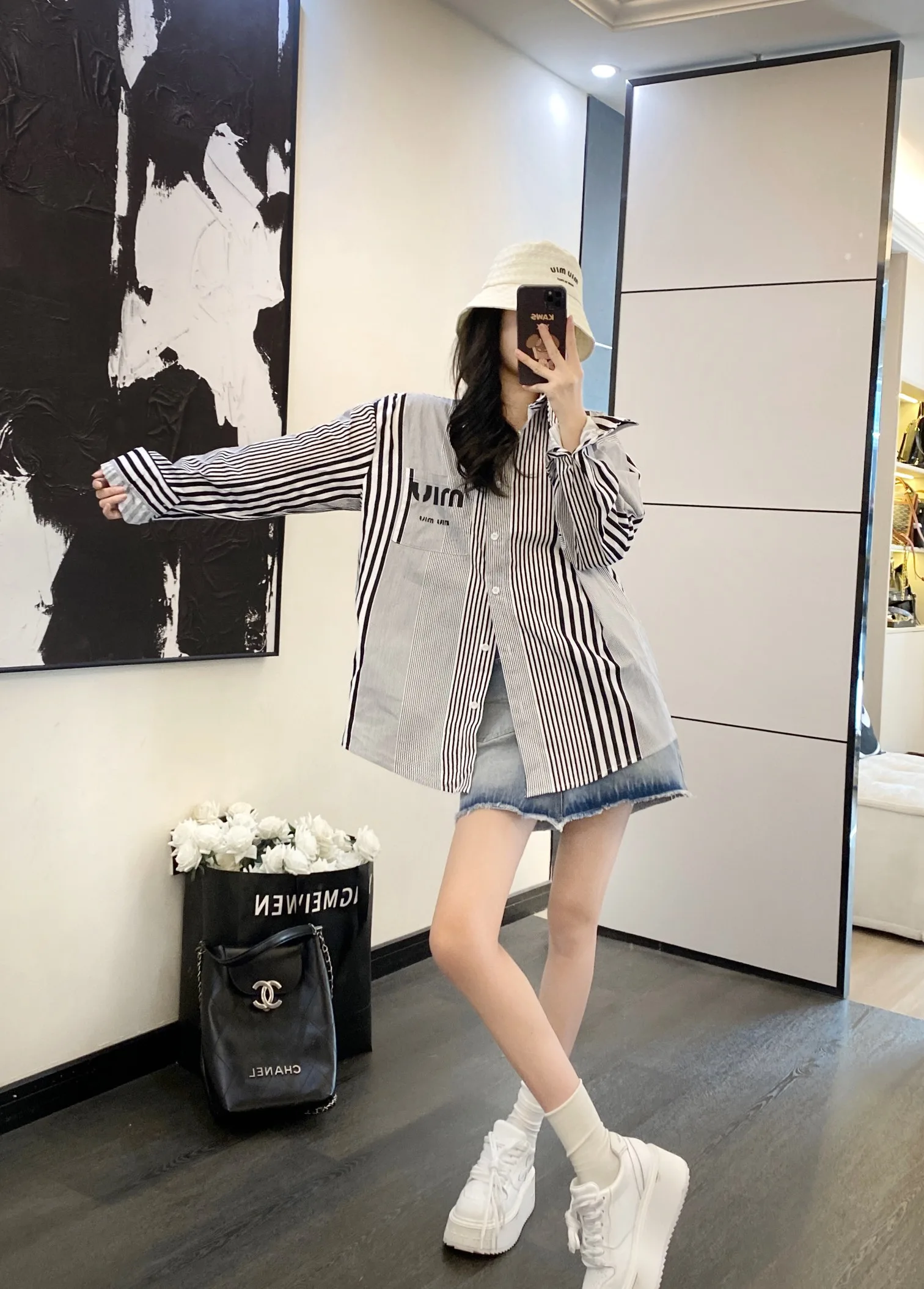 SS Neuheit MIN*Miu Mius neues gestreiftes Hemd. Vertikale Streifen sorgen für einen schlankmachenden Effekt. Schlicht, schlicht und elegant. Ich liebe es!