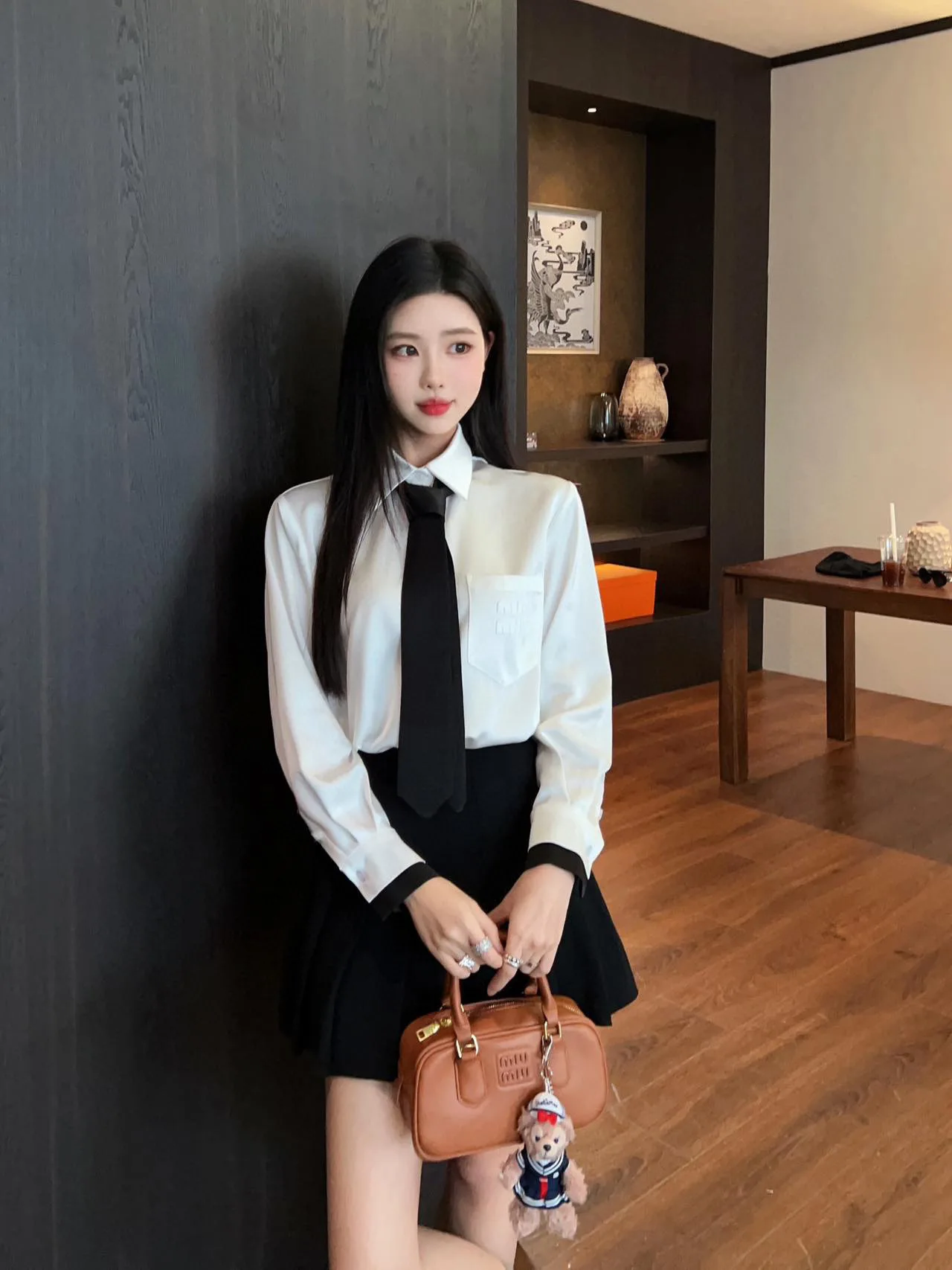 Miu Miu abnehmbares Krawattenhemd! Diese schicke, mädchenhafte Krawatte ist leicht, atmungsaktiv und unglaublich strukturiert! Französische Eleganz: Maßgefertigte Krawatten bieten den schönsten, mädchenhaften Stil dieser Saison.