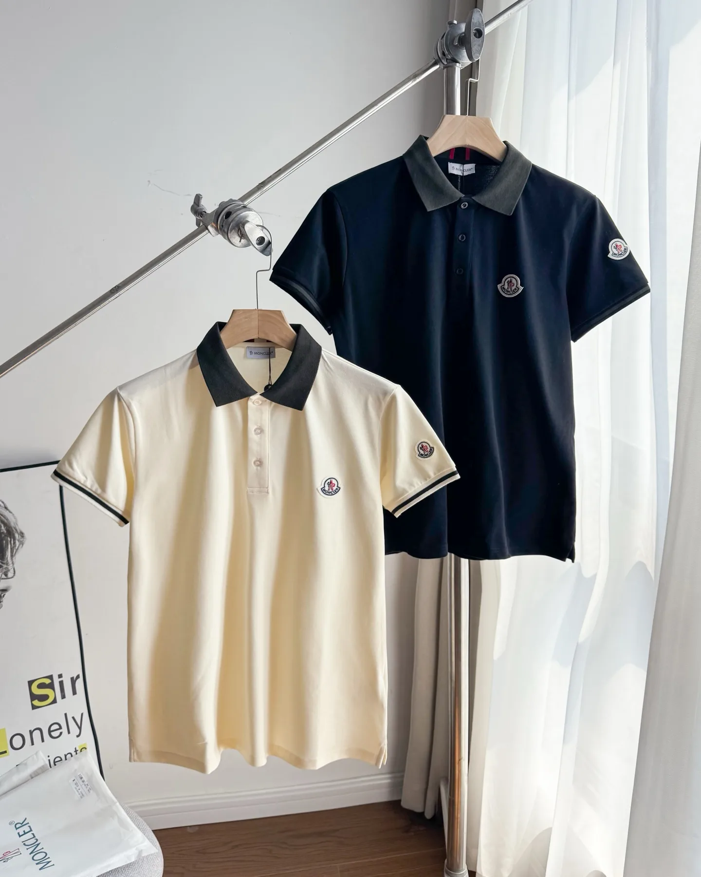 – Neu auf der offiziellen Moncler-Website: T-Shirt mit Revers und Logo-Webband am Kragen.