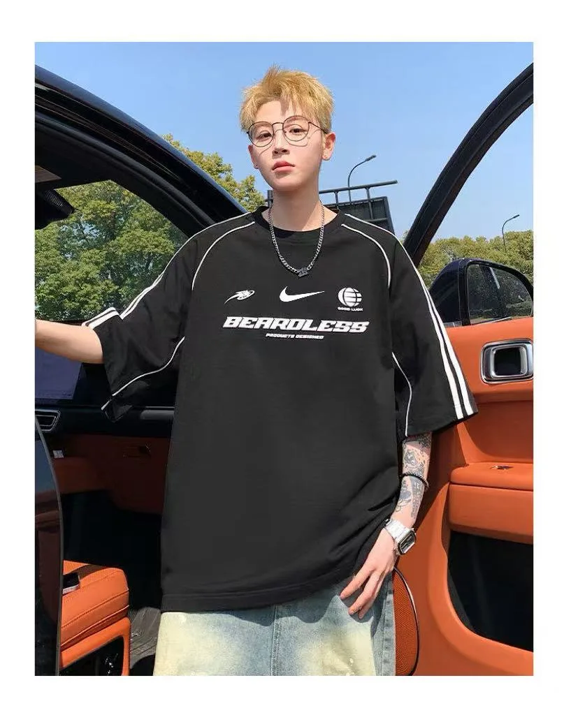 Gefertigt aus 100 % fein gekämmter Baumwolle, ist der Halsausschnitt mit speziell angefertigten Fäden versehen, um Verformungen vorzubeugen. Die Drei-Nadel-Fünf-Faden-Verarbeitung verfügt über einen Saum am Halsausschnitt und geklebte Schultern. Die Verarbeitung und die Stoffdetails sind tadellos. Die Drucke werden mit importierten Größen hergestellt, und die hochwertigen Stickereien sind exquisit und detailliert. Einfach perfekt!