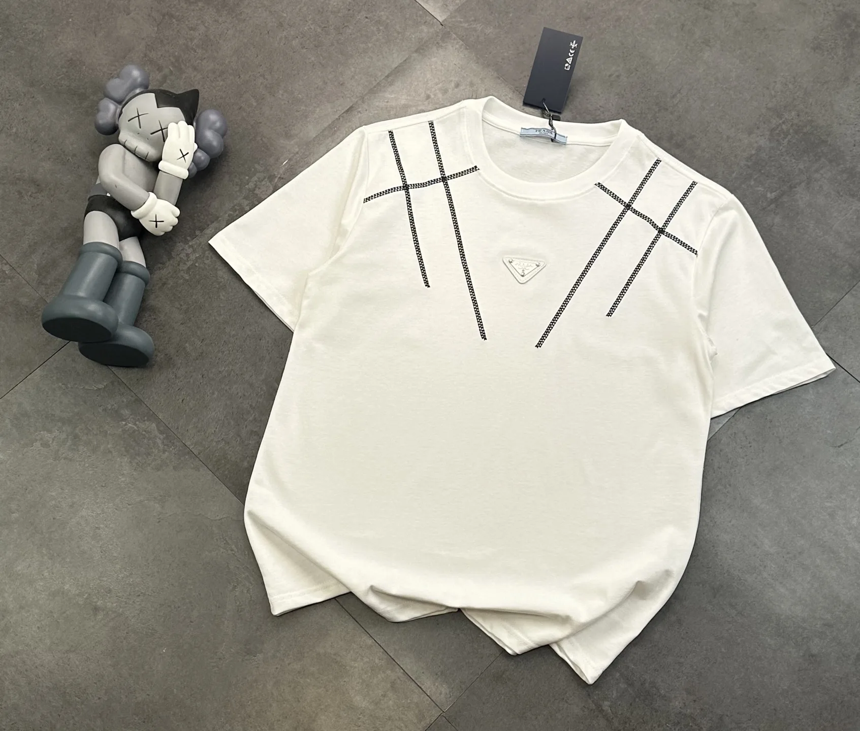 Ebenfalls erhältlich: eine verbesserte Version dieses trendigen, kurzärmeligen Prada-Paar-T-Shirts mit gesticktem Logo!