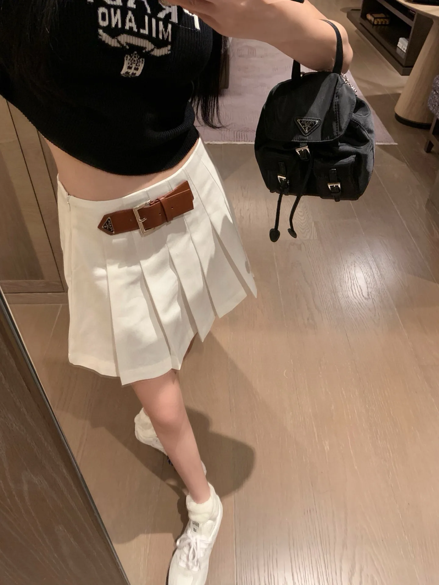 Prada Minirock mit Gürtelschnalle und Dreieckslogo
