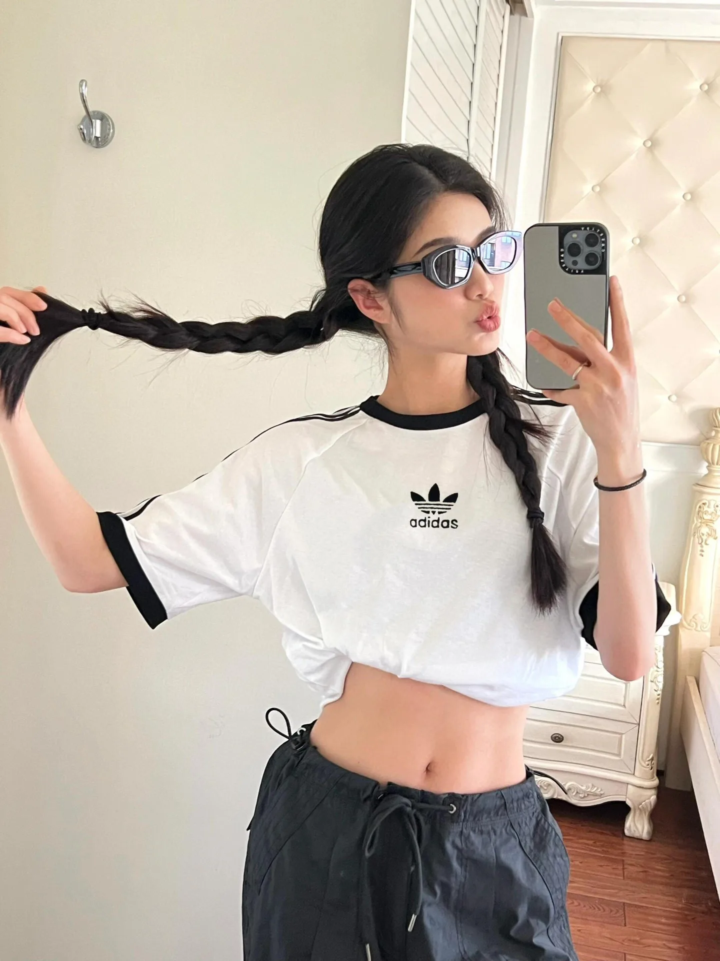 AD* Adidas Hot Girl Off-Shoulder-Tops sind ein echter Hingucker – sogar mit geschlossenen Augen! Schulterfrei, Rundhalsausschnitt! Die langen Ärmel des Hot Girl sind vielseitig und betonen Ihre Figur. Erhältlich in Schwarz und Weiß. Edle Stickereien. Details im American Hot Girl-Stil finden Sie hier.