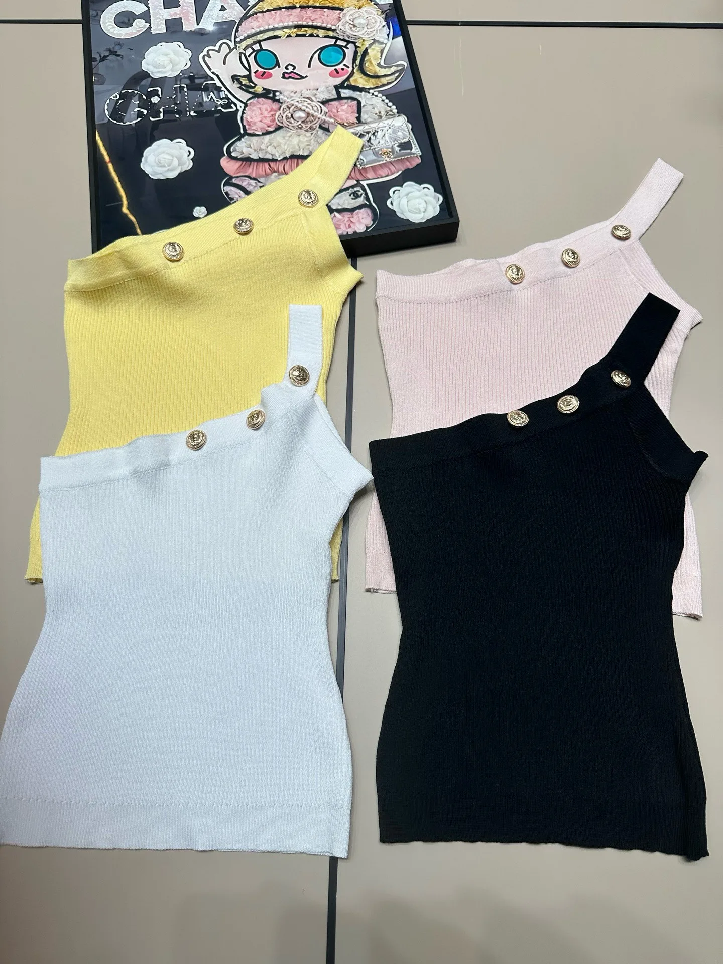 Balmain – Off-Shoulder-Strickweste mit goldenen Knöpfen