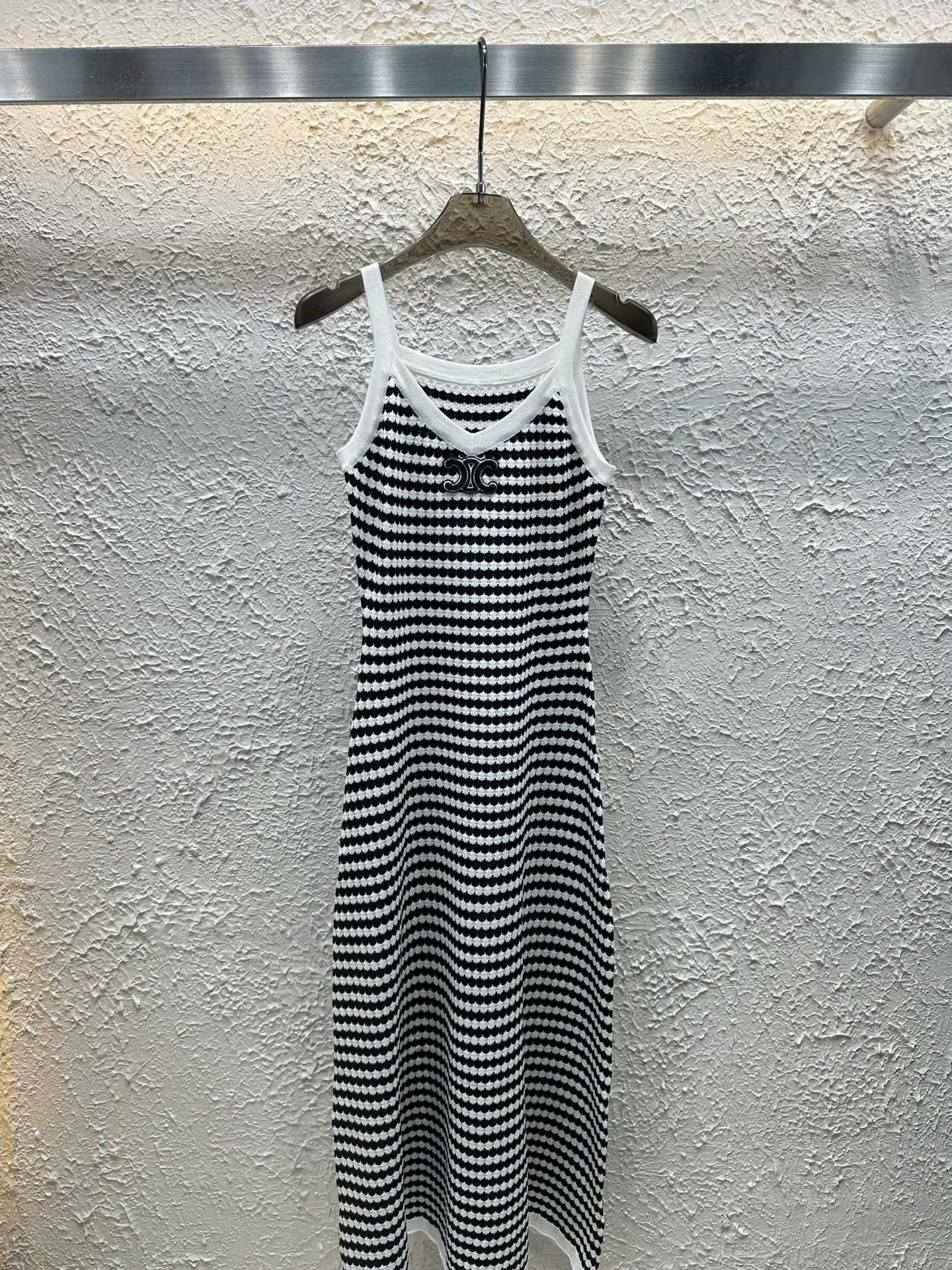 Celine Arc de Triomphe – Gestreiftes Strick-Unterkleid mit Stickerei