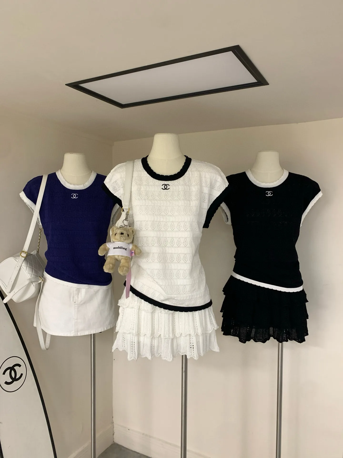 Luxuriöse Chanel-Weste im blauen Strick-Stil mit Stickerei