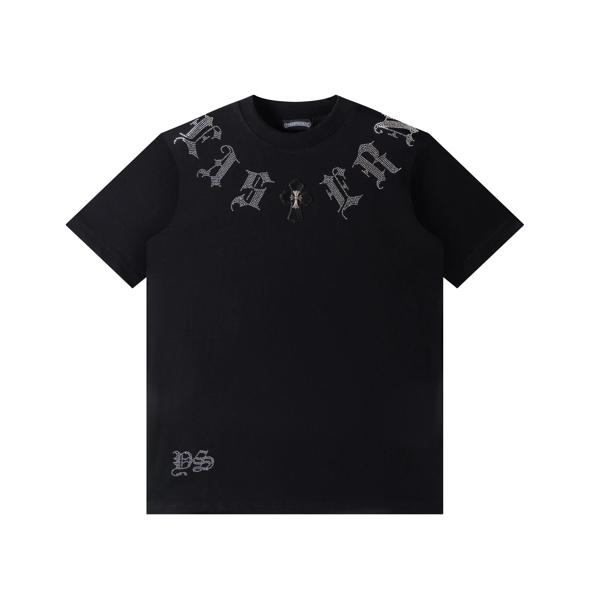 Chrome Hearts Cross Lederlabel mit Sanskrit-Schriftzug und heißgebohrten Diamanten auf dem Kurzarm-T-Shirt zum reduzierten Preis.
