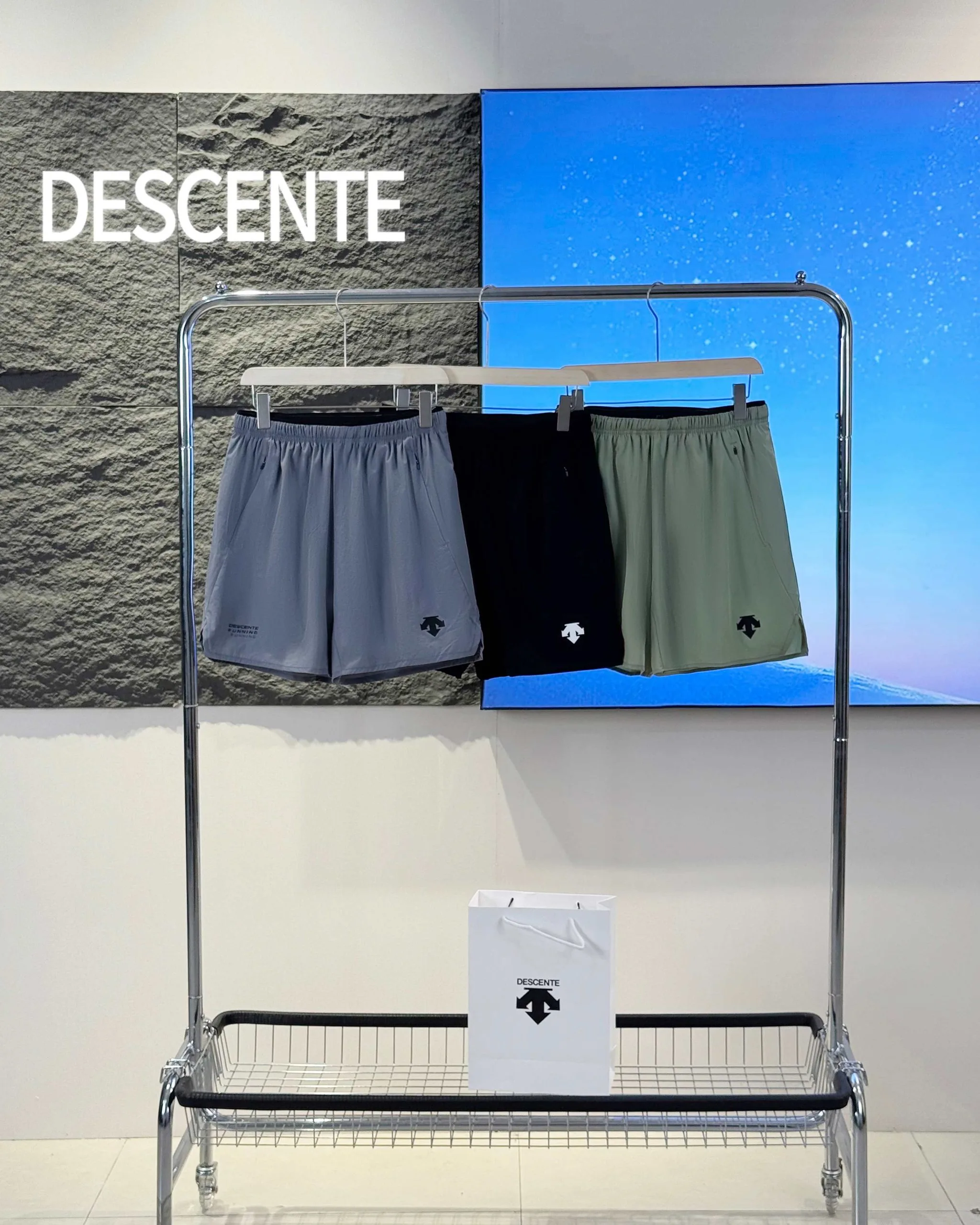 DESCENTE Herrenshorts aus ultrastarkem, gewebtem Material, die funktionelle Outdoor-Bekleidung mit urbaner Freizeit kombinieren.