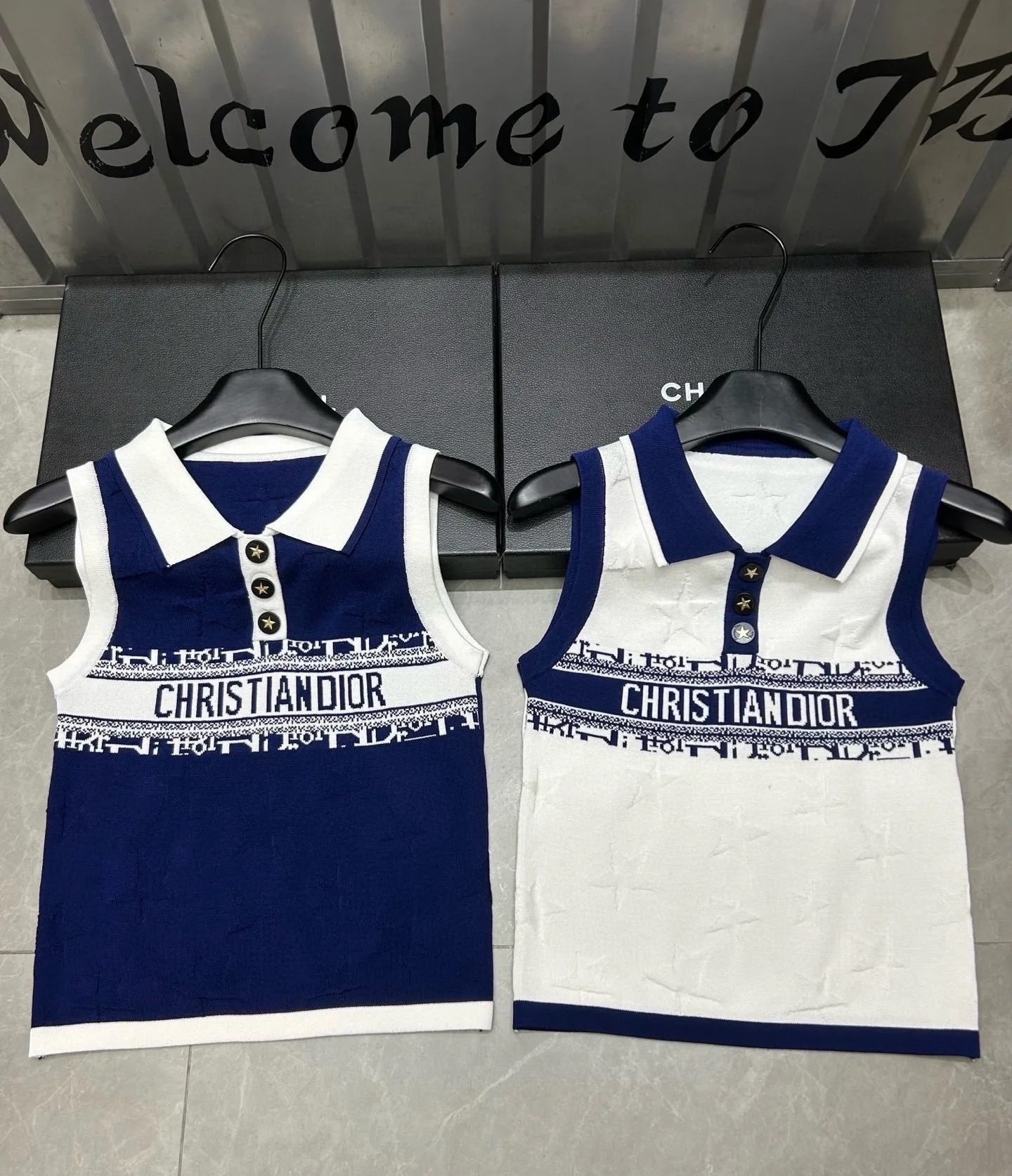 Luxuriöse Dior Weste im blauen Jacquard-Strickstil