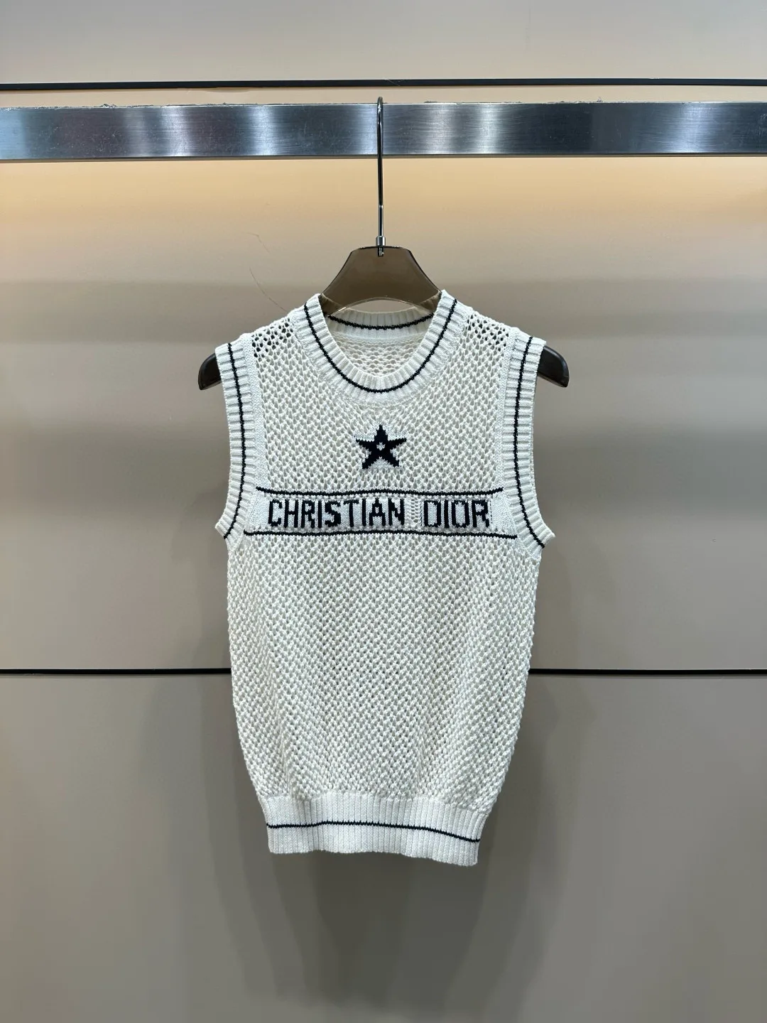 Luxuriöse Dior Weste im weißen Jacquard-Strickstil