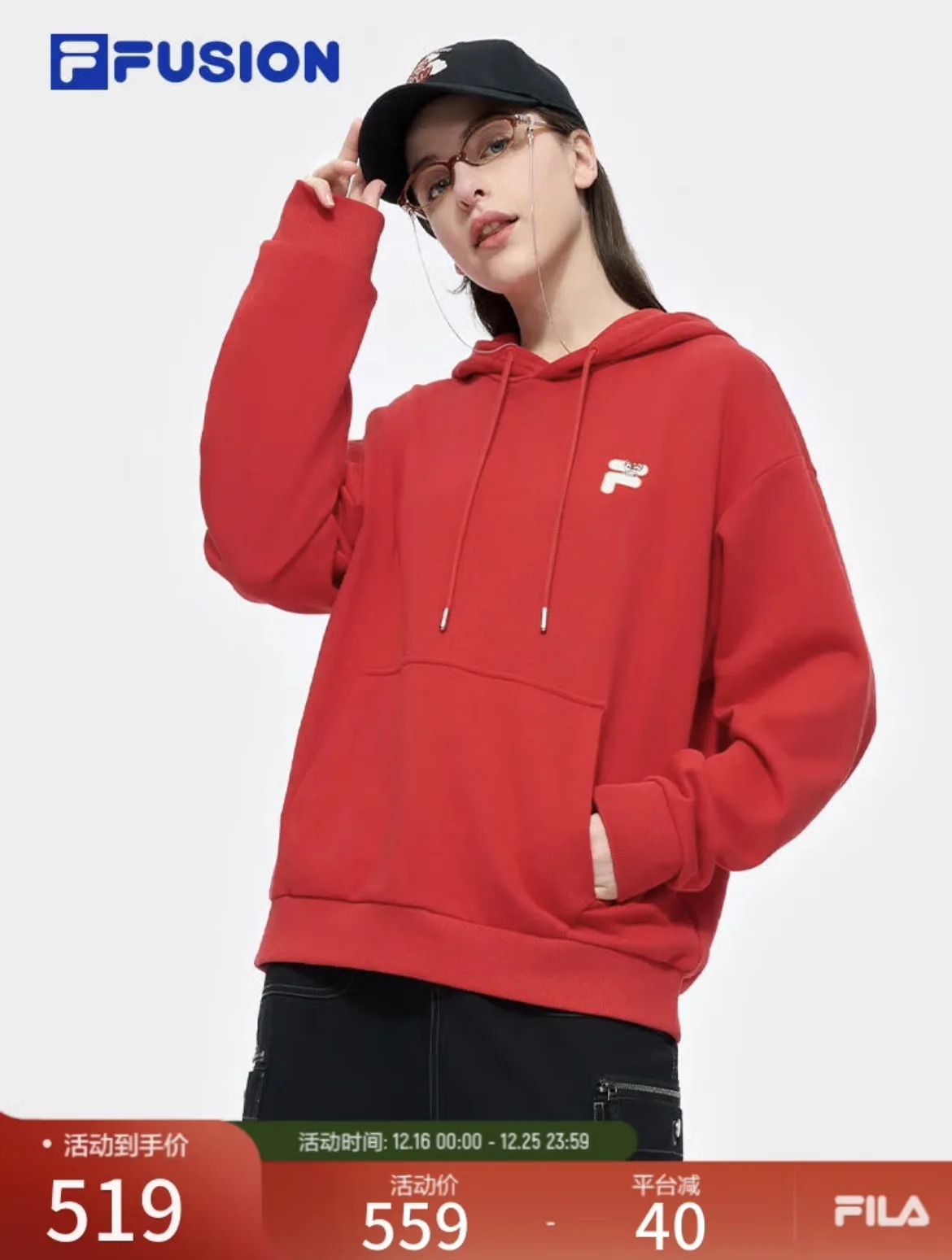 FILA Nian Beast Series Silver Fox Fleece Hoodie im lässigen Paar-Style. Premium Edition.