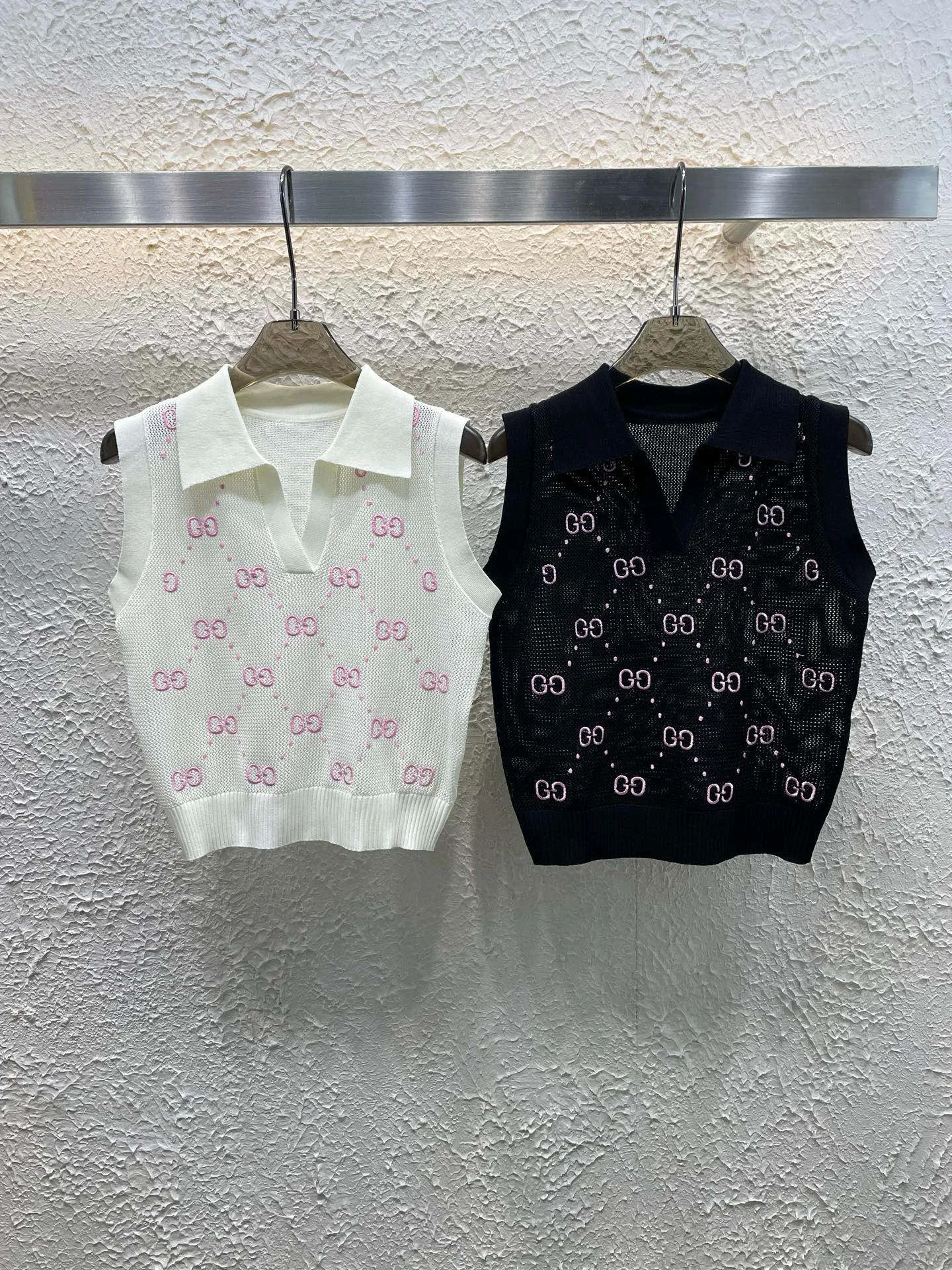 Luxuriöse Gucci-Weste im weißen Strick-Stickerei-Stil