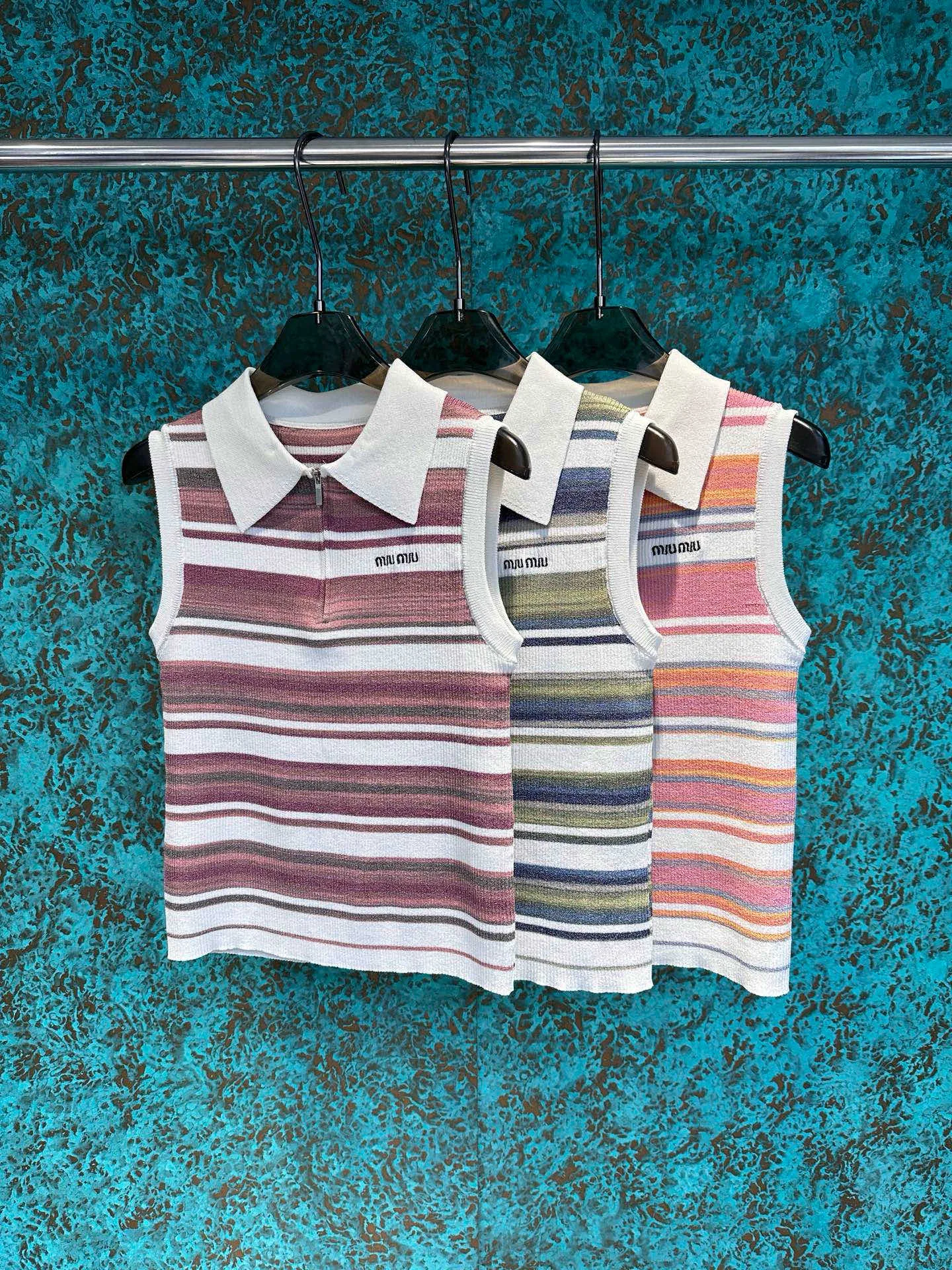 Miumiu Miu Miu Strickweste mit Logostickerei, Farbverlauf und Streifen, halblangem Reißverschluss und Revers