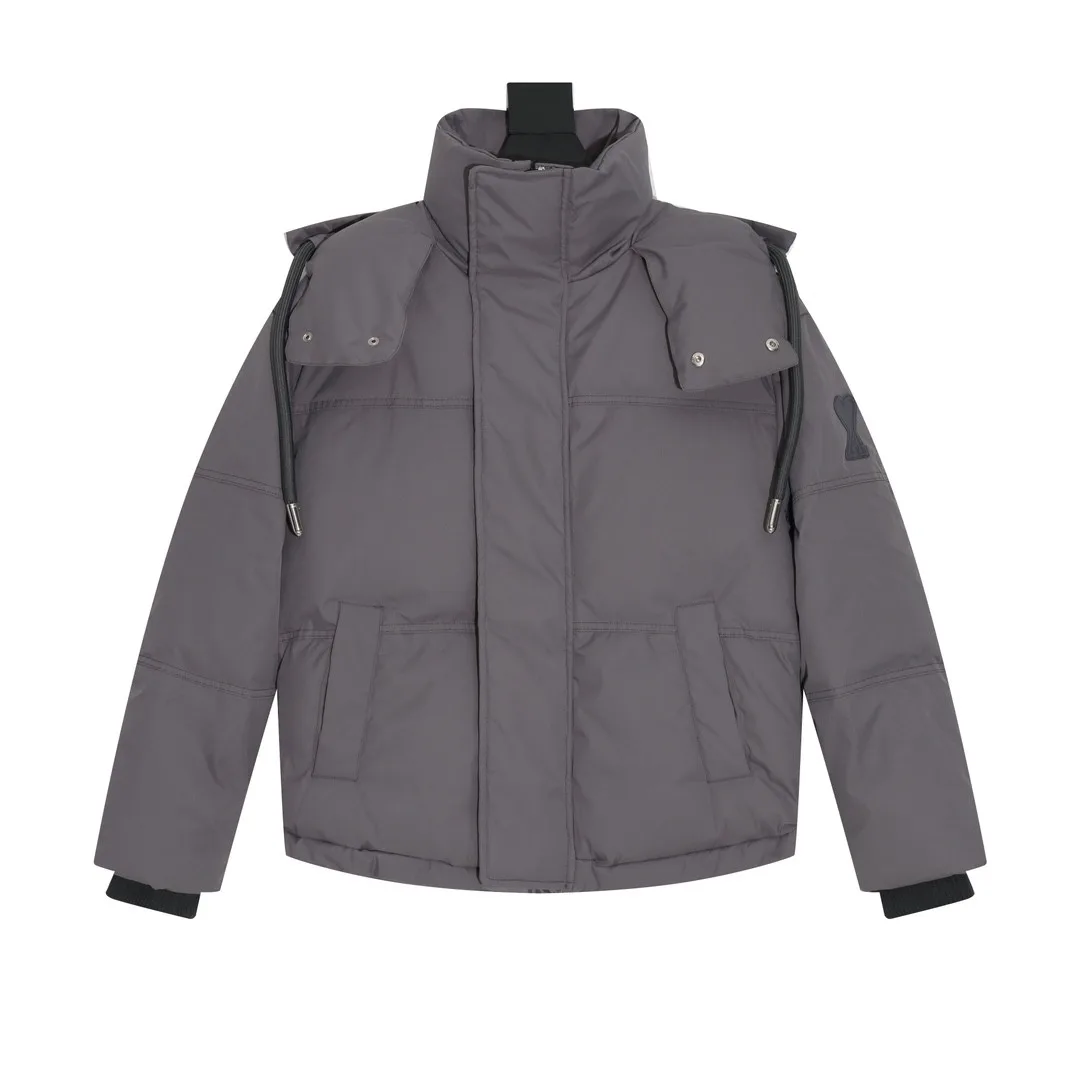 AMIRIS Herz-Logo-Applikation, Kapuze, Kordelzug, kurz, einfarbig, locker sitzende Daunenjacke in vier Farben, Unisex.