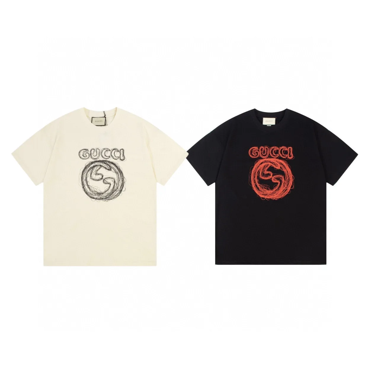 GUCCI SS Graffiti Lines Doppel G Stickerei Paar-Kurzarm-T-Shirt mit Rundhalsausschnitt – Premium Originalversion
