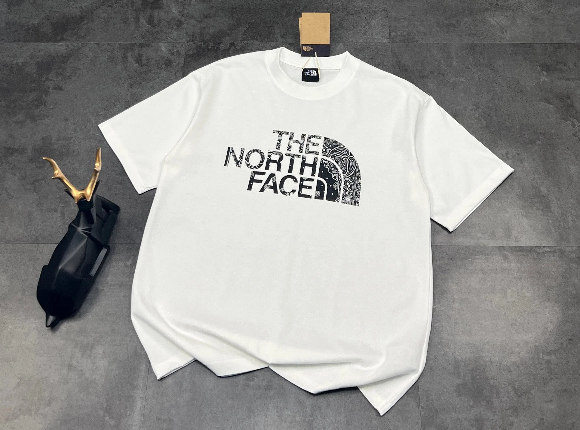 Neue Kurzarmshirts: Das Rundhals-Kurzarmshirt mit Paisleymuster von The North Face Koreas angesagtestem Paar!