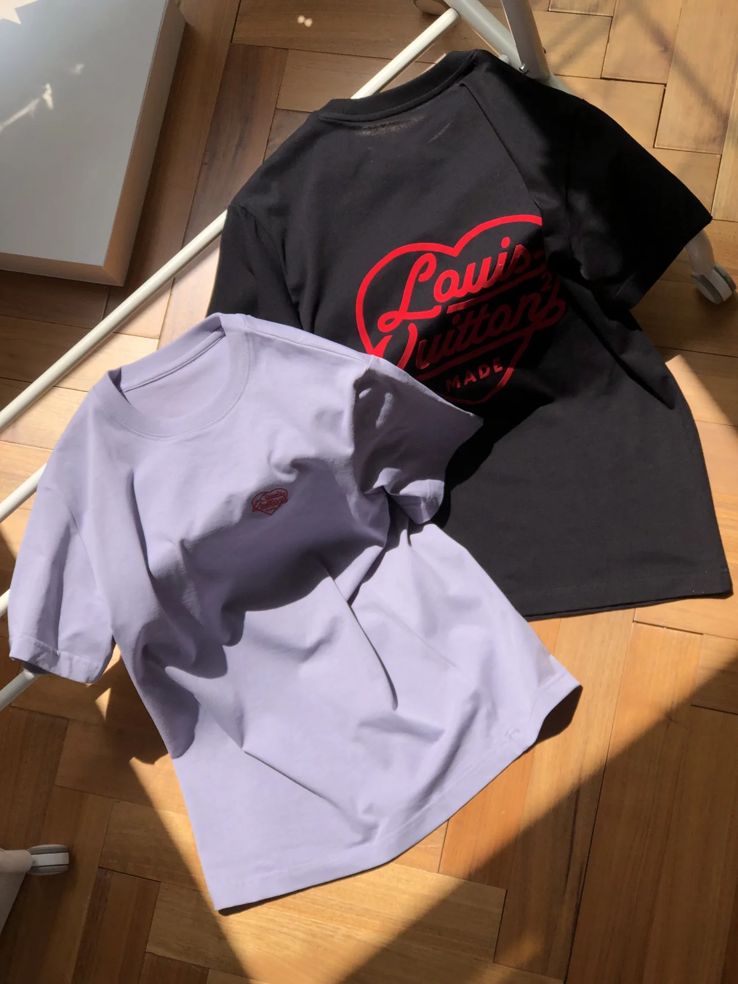 (Dropship) Damen Louis Vuitton SS Herz-Logo Doppelgarn Kurzarm-T-Shirt (Premium-Version)