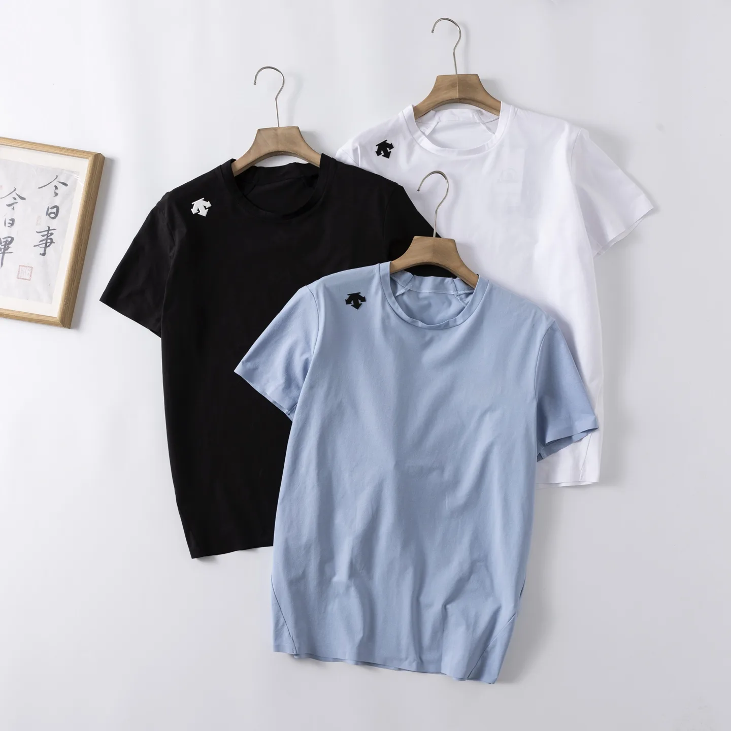 Wir bieten hochwertige Produkte – DESCENTE / Descentes dreifarbige TRAINING-Trainings-T-Shirts aus feuchtigkeitsableitender, schnelltrocknender, schweißableitender, kurzärmeliger, laminierter Baumwolle für Damen und Herren.