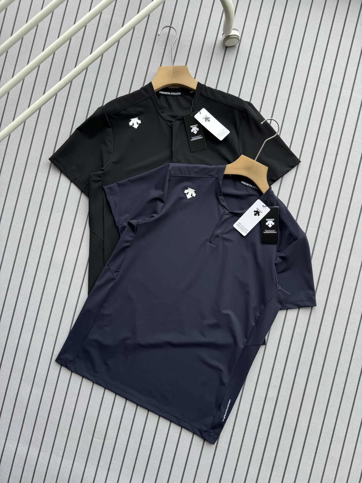 DESCENTE | TRAINING-Serie Herren Henley Schnelltrocknendes Kurzarm-T-Shirt. Technologie für Sport, Style für Style