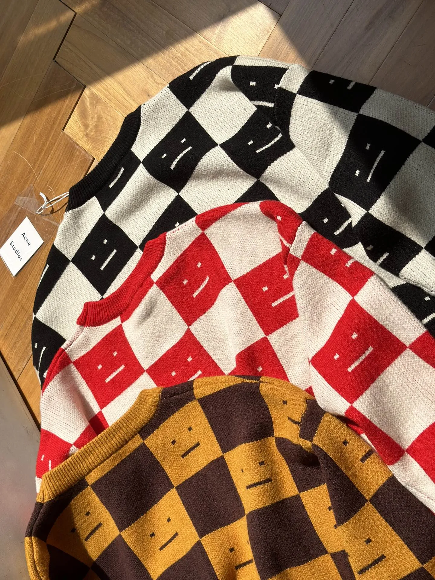 Acne Studios Rundhalspullover mit Schachbrettmuster und Smiley-Gesicht