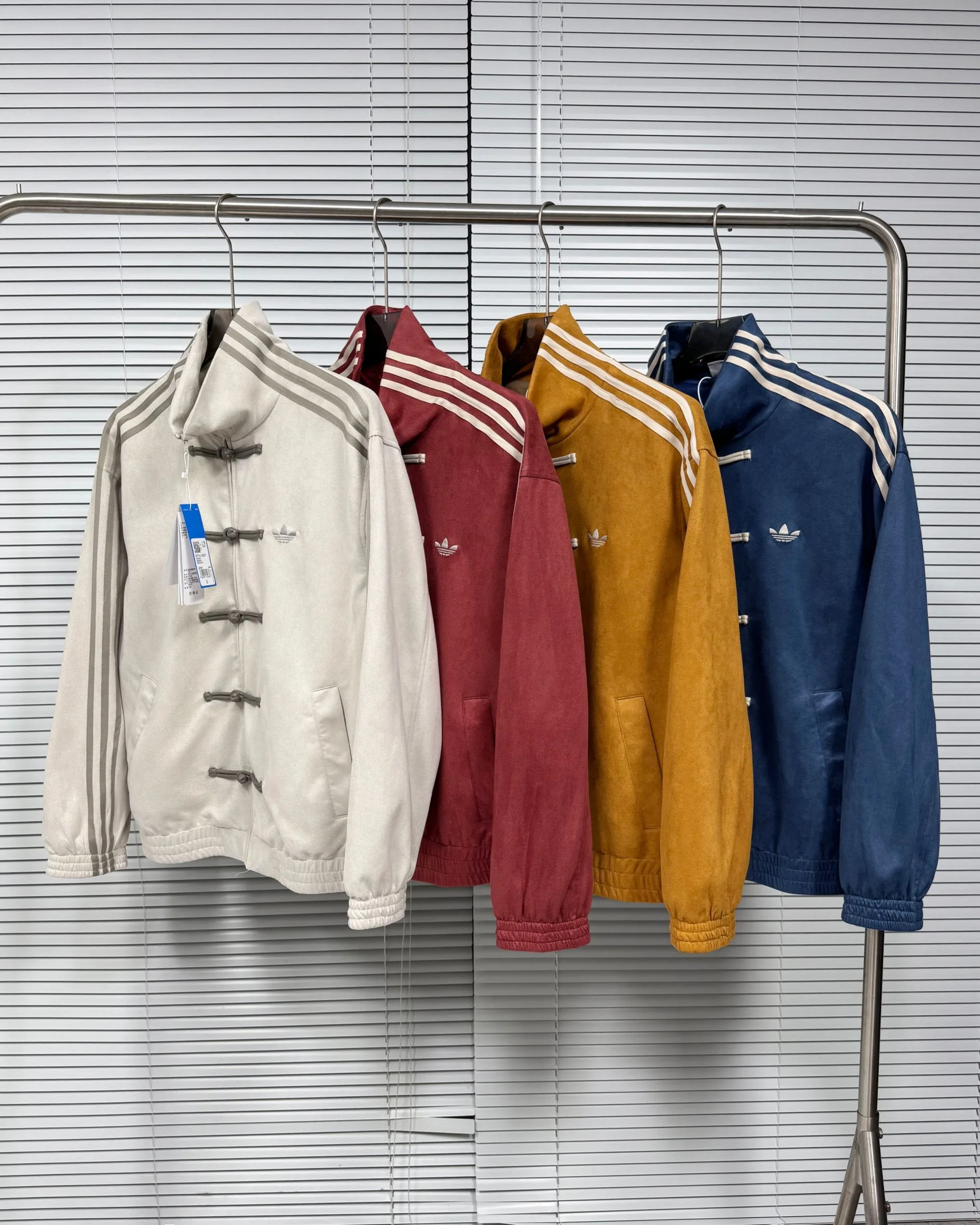 Adidas / Adidas Limited Edition Jahr der Schlange, Originalqualität, Wildleder mit Kleeblatt-Logo-Stickerei, Tang-Anzug-Jacke mit Knöpfen, Stehkragen, lässige Retro-Jacke, Unisex-Stil.