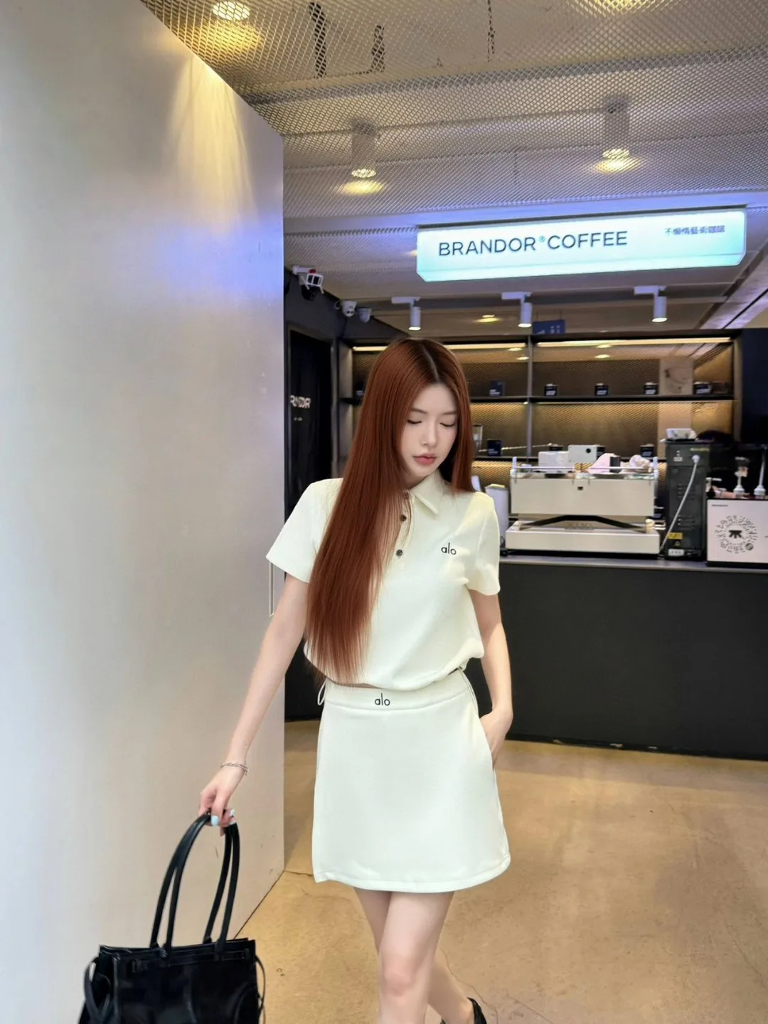 ALO [Set mit kurzärmeligem Rock und Monogramm-Stickerei am Revers]