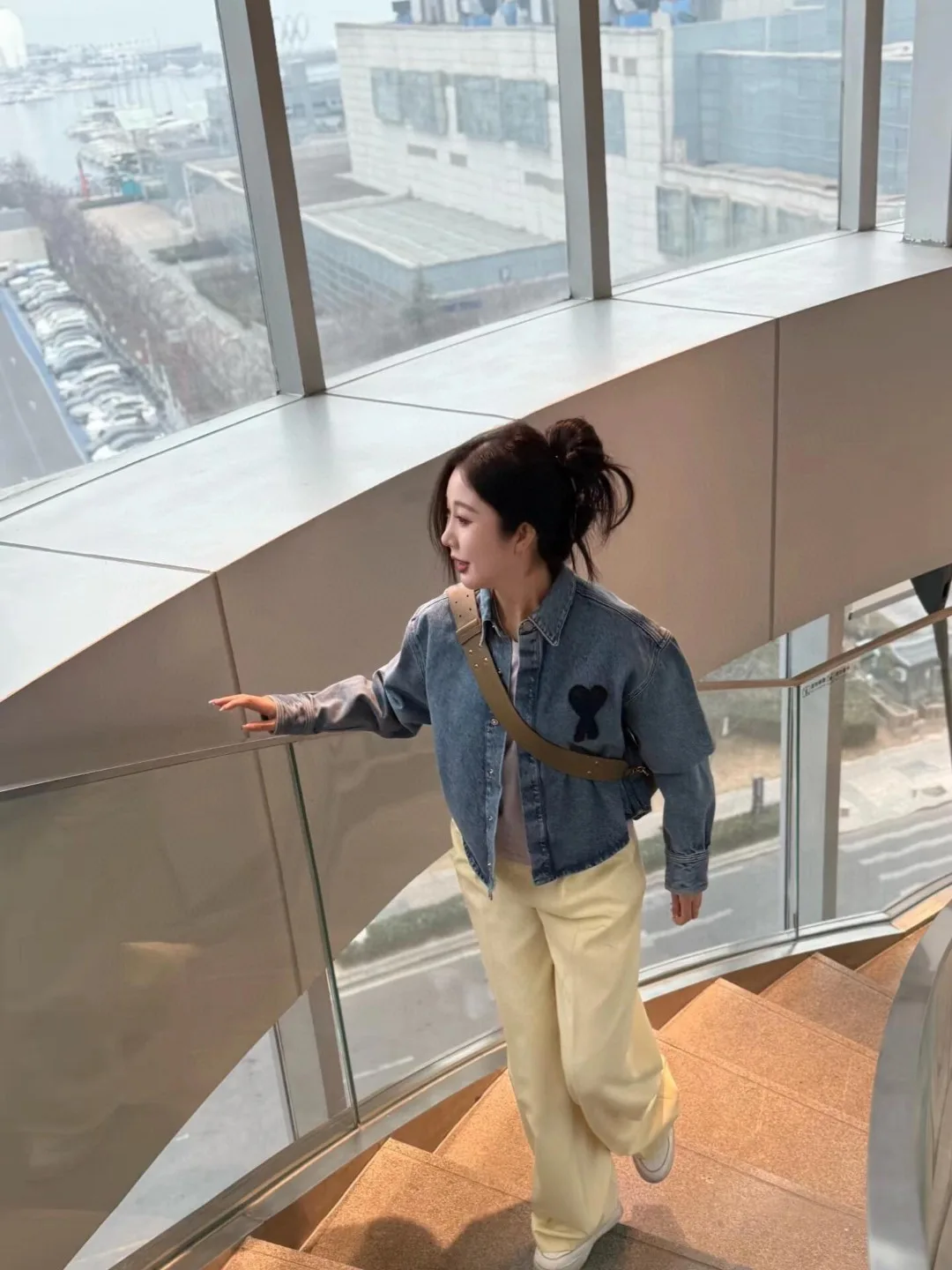 Ami Neue Retro-blaue, herzförmige, kurze Jeansjacke und Hemd