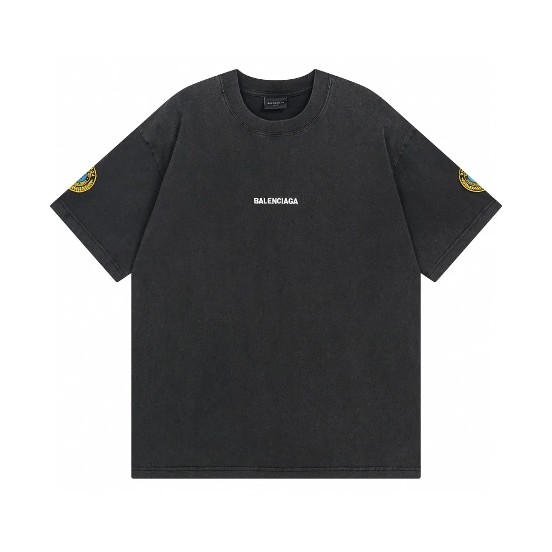 BALENCIAGA/Balenciaga SS: Neues Kurzarm-T-Shirt mit aufgesticktem Paris-Logo auf der Brust und feinen Patches an den linken und rechten Manschetten.