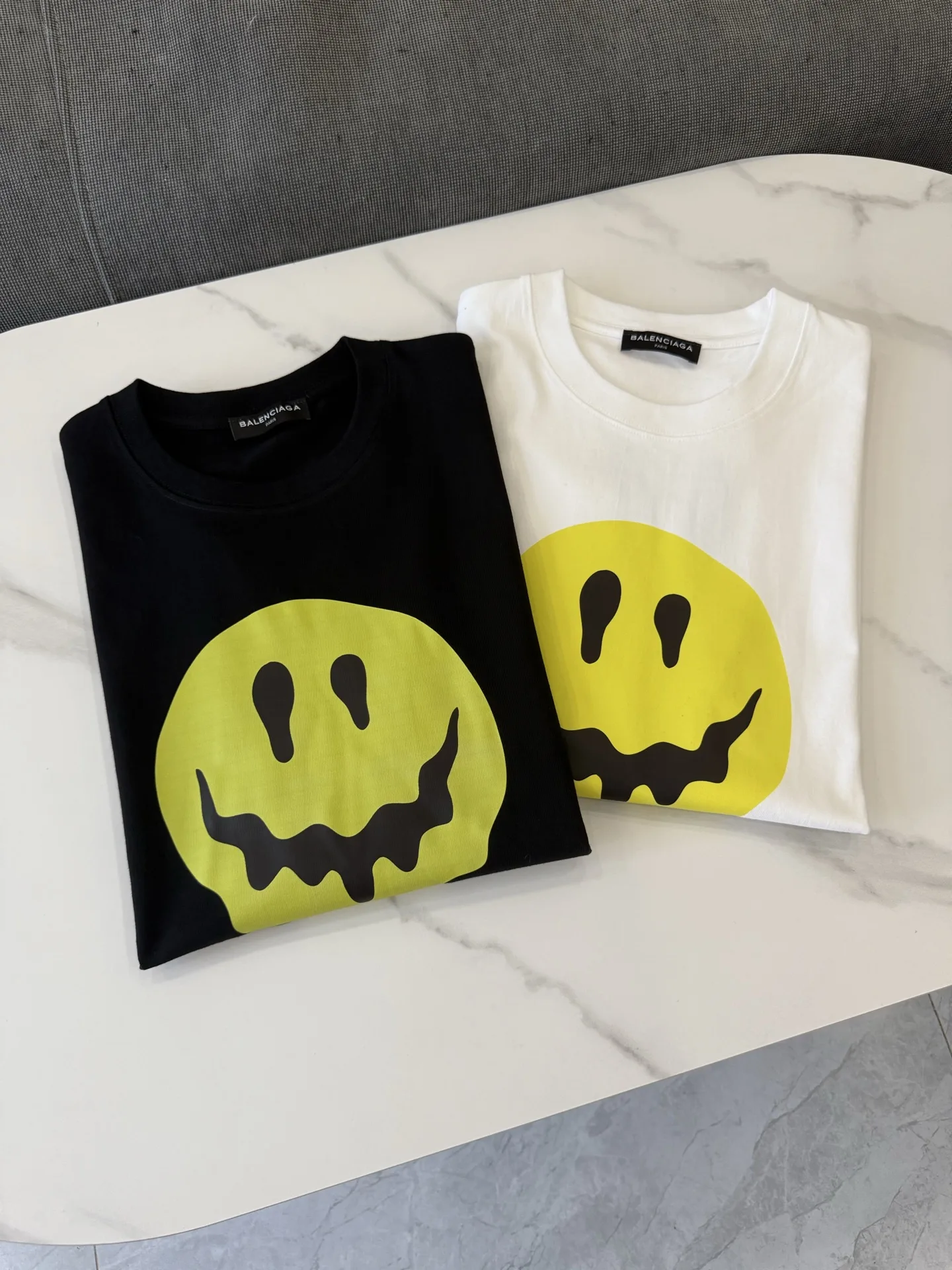 Balenciaga SS Drice Large Fit Lässiges Kurzarm-T-Shirt mit Smiley-Print