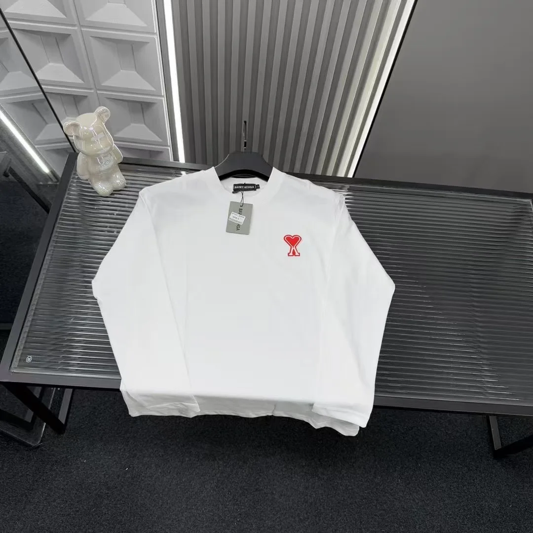 Empfohlen für den Frühherbst: Das langärmlige Amiri-Basisshirt mit Herzstickerei aus der Balenciaga-Kollaboration. Alle drei Labels sind identisch mit der offiziellen Website. Zoomen Sie hinein, um Details zu sehen. Foto mit der Originalkamera aufgenommen.