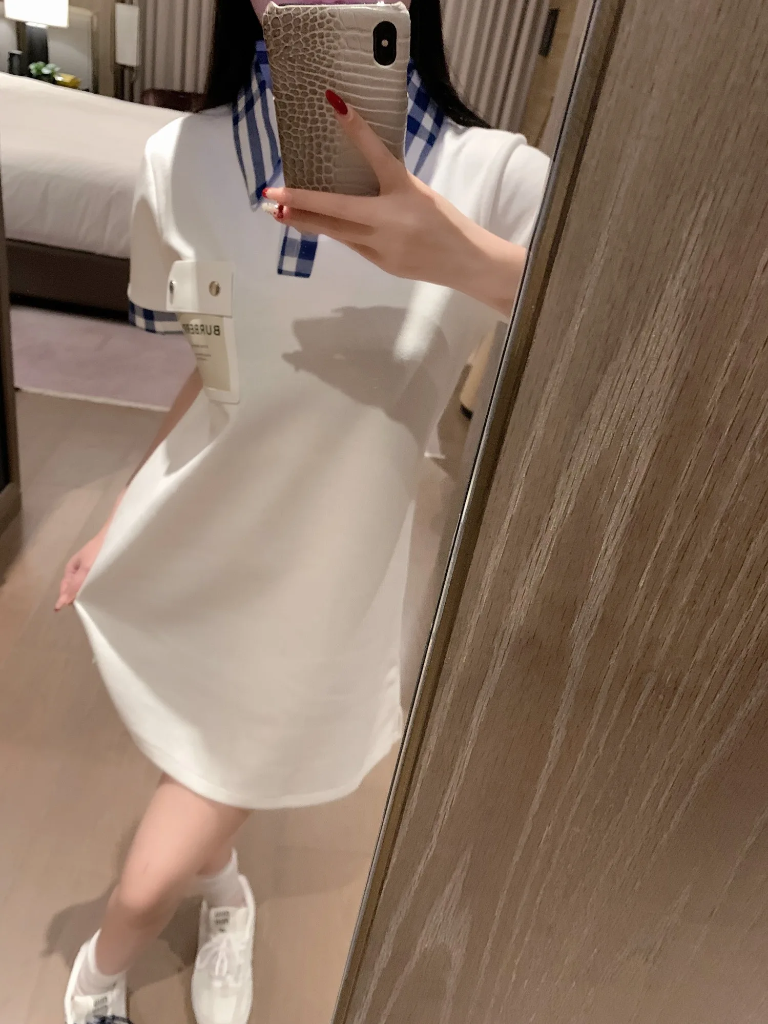 BURBERRY [Kurzarmkleid mit kariertem Lederlabel]