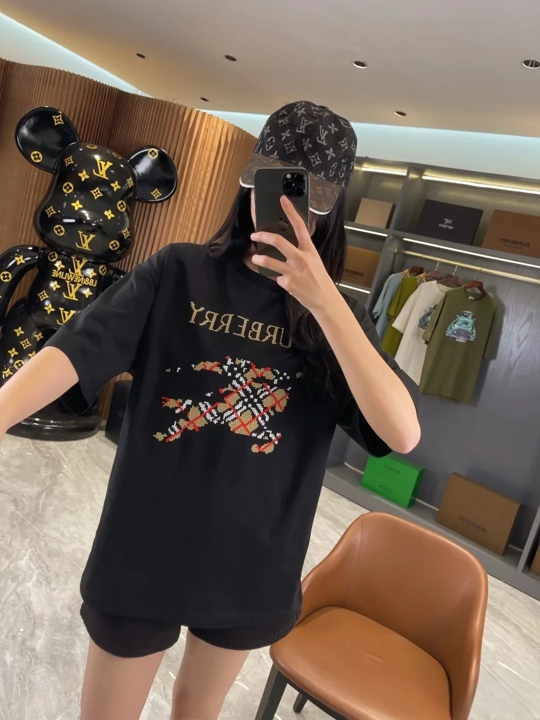 Wir bieten ein hochwertiges Burbberry Kurzarm-T-Shirt mit Mosaik-Pferdelogo auf der Brust an, unisex und ohne Preiskontrolle. Diese hochwertige Version ist für jedes Alter, jeden Körpertyp und jedes Geschlecht geeignet. Die lockere Passform und der bequeme Stoff sind unglaublich strukturiert und vielseitig – perfekt für Männer und Frauen. Ein Must-have. Alle drei Labels sind im Lieferumfang enthalten.
