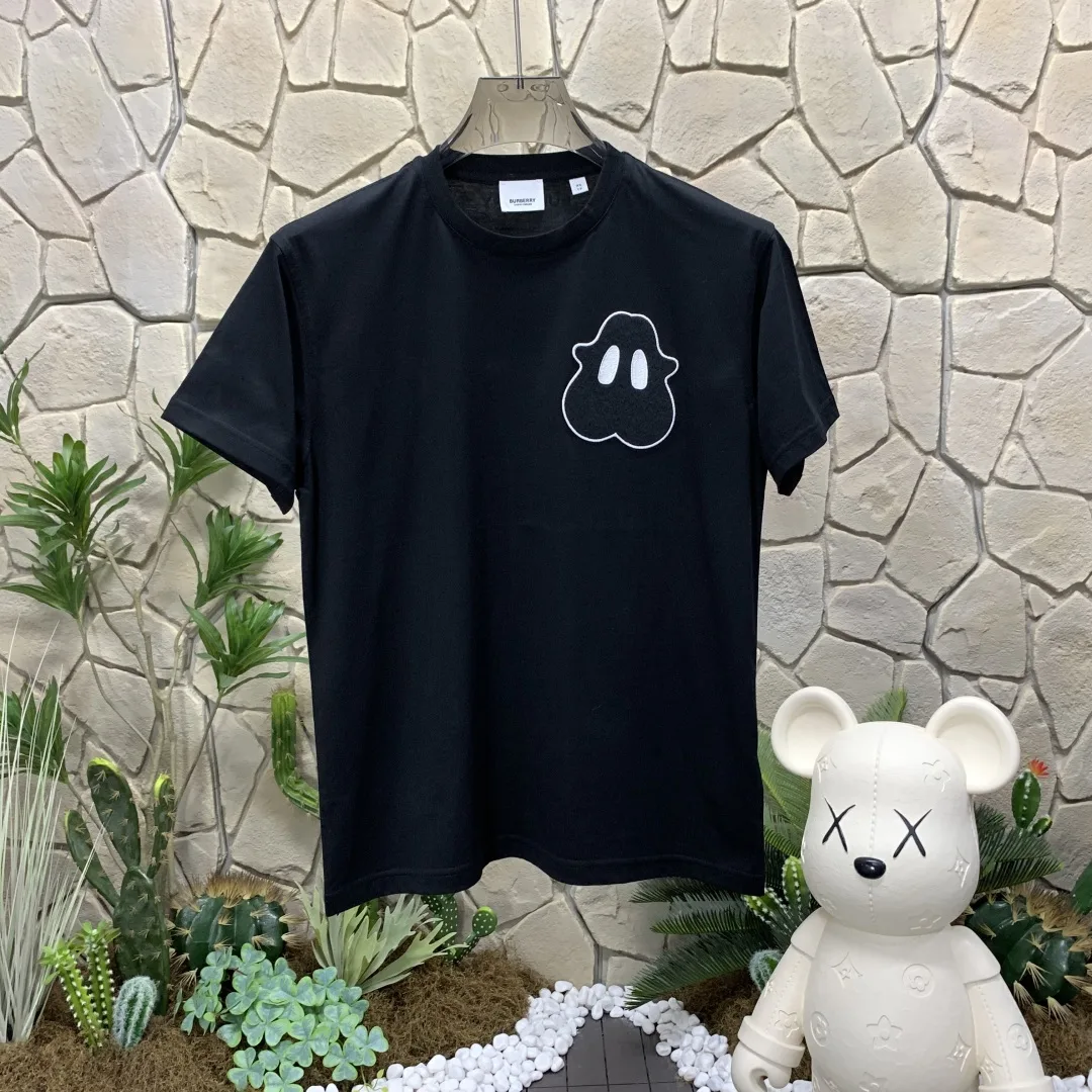 Burberry Einfarbiges, lockeres Kurzarm-T-Shirt mit Monster-Stickerei, Rundhalsausschnitt und überschnittenen Schultern für Damen und Herren, Schwarz.