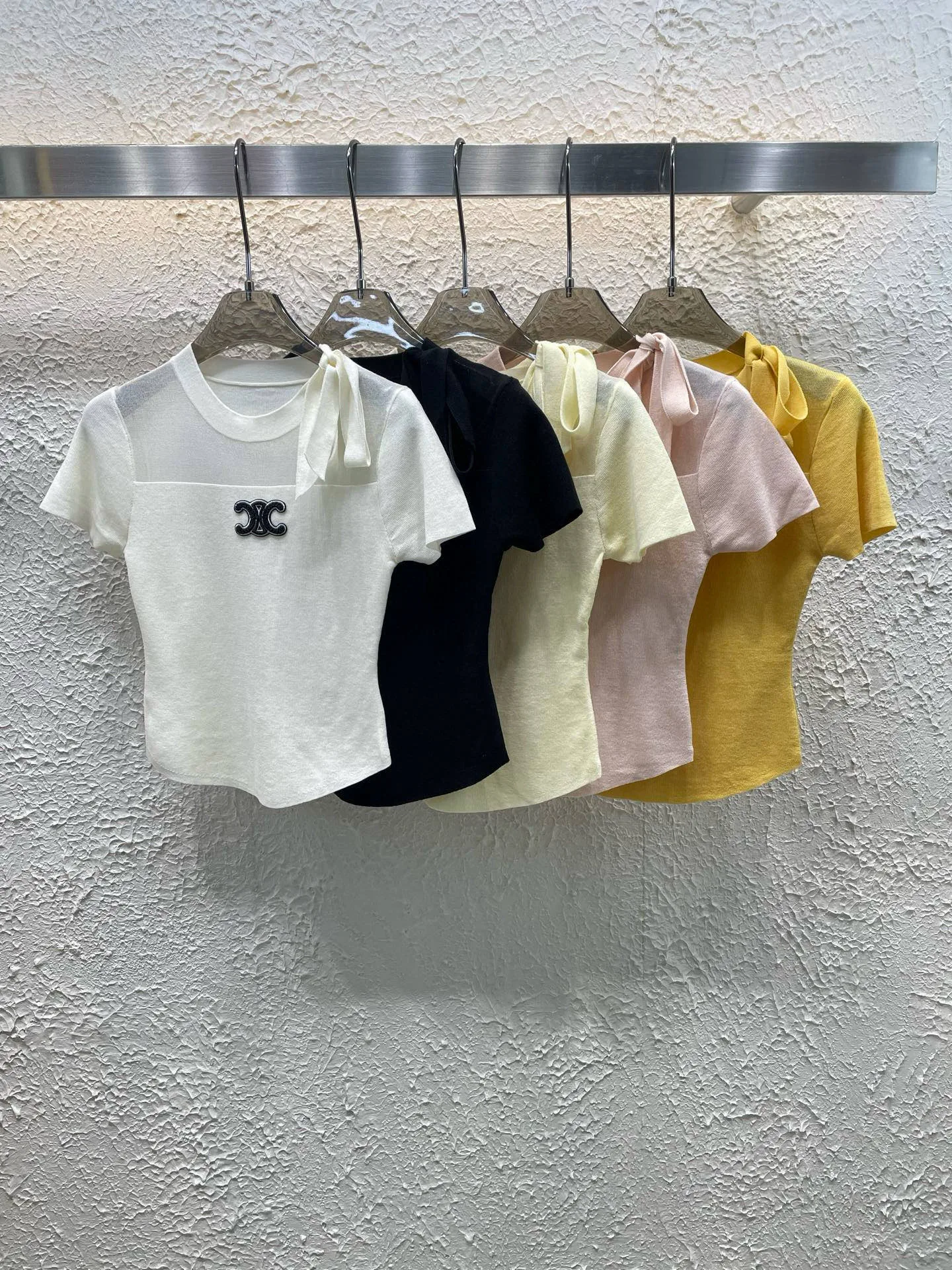 Luxus Celine Kurzarm Strick Bestickt Luxus