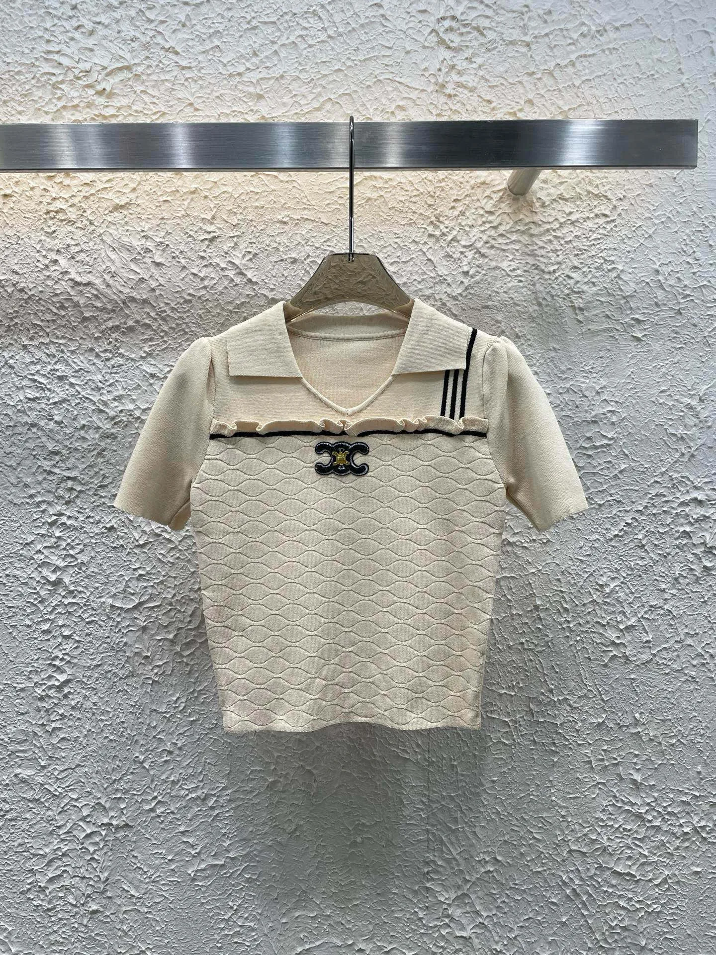 Luxus Celine Kurzarm Strick Bestickt Luxus