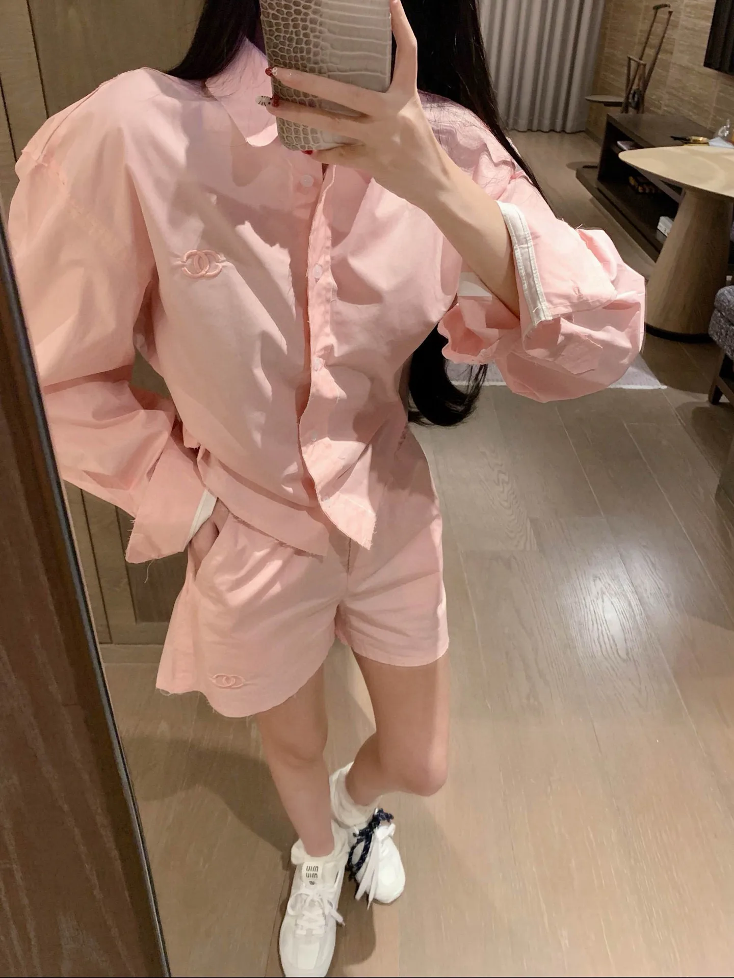 Chanel Set aus Hemd und Shorts mit Doppel-C-Stickerei und Fransen
