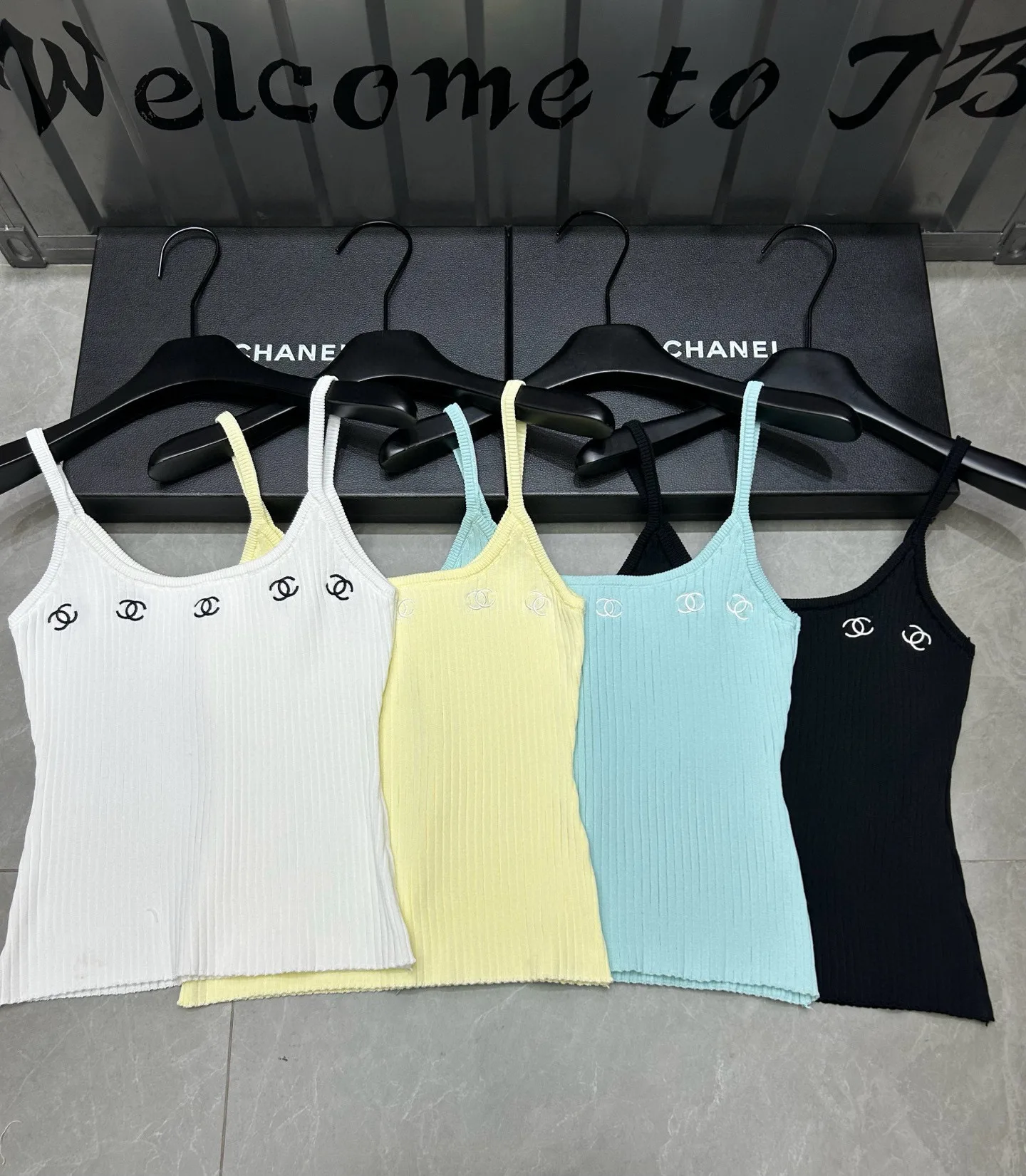 Luxus Chanel Hosenträger Weiß Strick Bestickt Luxus