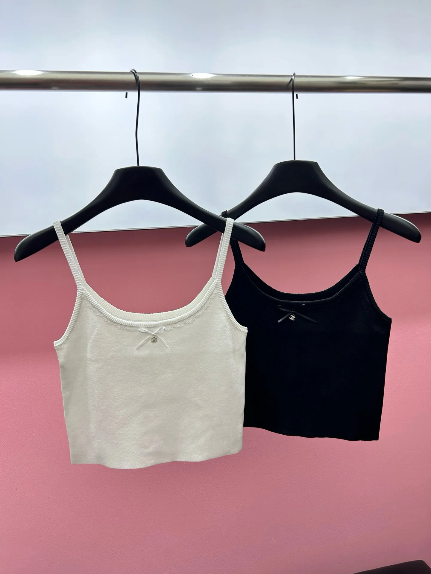 Chanel Strick-Camisole mit Doppel-C-Schleife und Spitzenbesatz